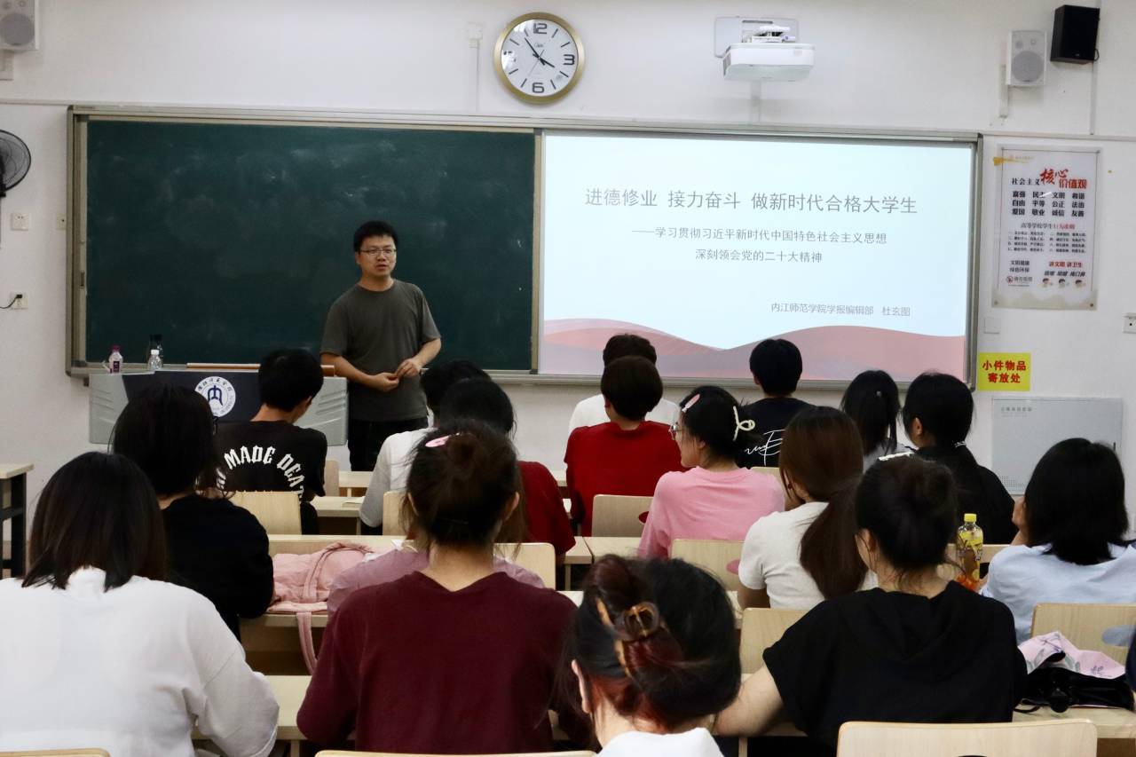 为学习贯彻习近平新时代中国特色社会主义思想,深刻领会党的二十大精神,并进一步增强我院学子的责任感和使命感,6月20日下午三点五十分,我院于明德楼B区122教室开展主题教育学习专题讲座。此次活动由我校学报编辑部副主任杜玄图老师担任主讲人,我院2022级4班全体同学参与。