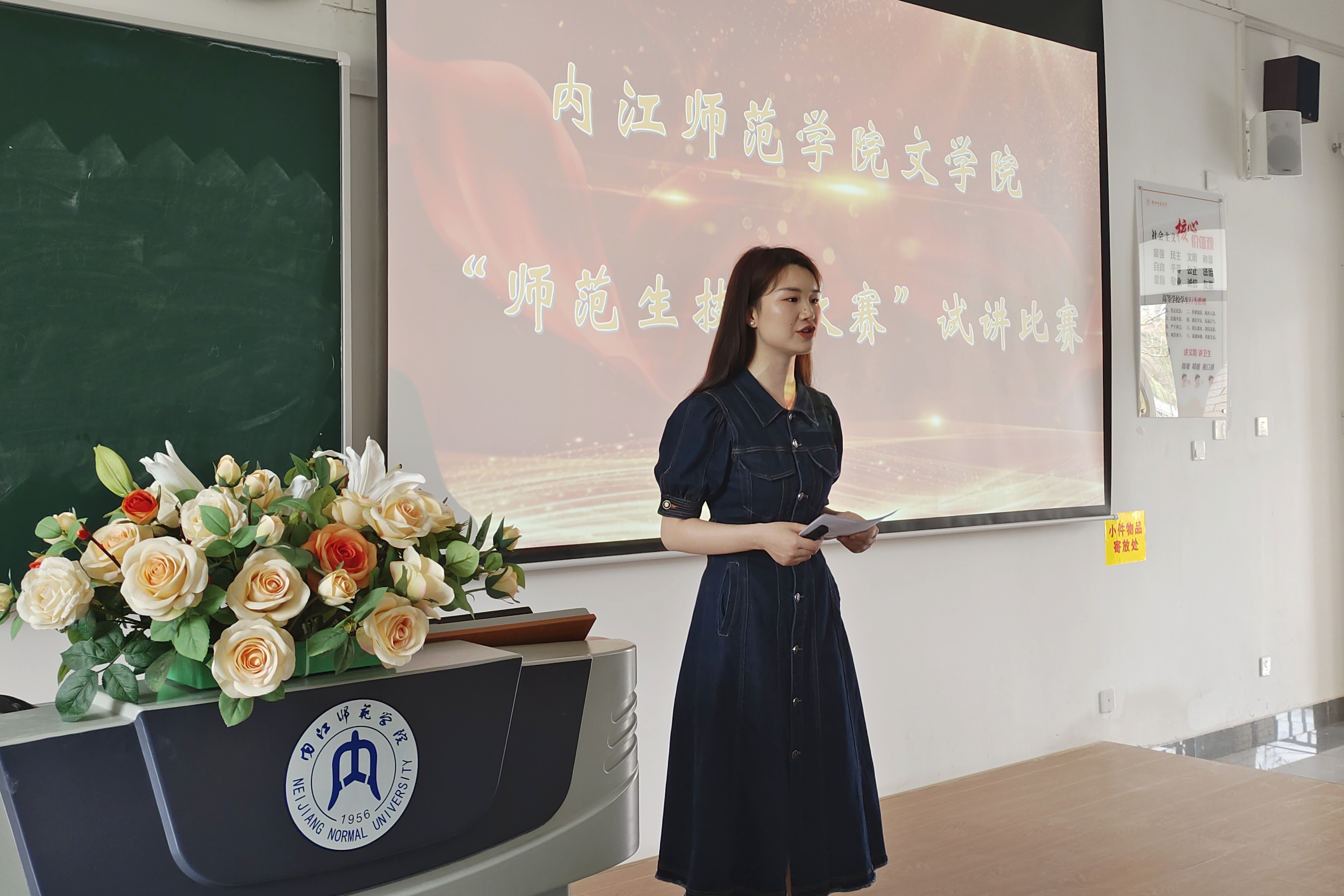 语文教学论教研室老师们从两月前就师范生教师口语、教师教态、授课内容设计、教学方法、多媒体使用以及板书设计等方面对参赛选手进行了系统训练和指导。比赛中,选手们以精准的知识点把控力,高效的课堂驾驭能力展现出文学院师范生较强的专业能力,展示了我院学子的青春风采。来自内江六中的施路老师在比赛结束后对每位选手的模拟授课的试讲环节进行了针对性点评,同时在教学设计和教学方法、教师礼仪等方面提出了建议。本次师范生模拟授课比赛的成功举行,为师范生提供了一个实践与交流的平台,也对我院提升师范生实践教学水平、增强实践创新能力起到了促进作用。