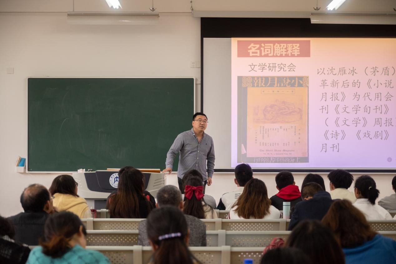 为提高青年教师教学技能, 2022年3月21日下午,文学院2022年度青年教师讲课比赛在明德楼A108教室拉开序幕。现当代文学与外国文学教研室青年教师刘鹏参加比赛。刘老师围绕文学研究会的产生背景、发起时间、地点、代表人物、代表作品及其社会影响等因素条分缕析,传统讲授法与现代信息技术完美结合,给人深刻印象。