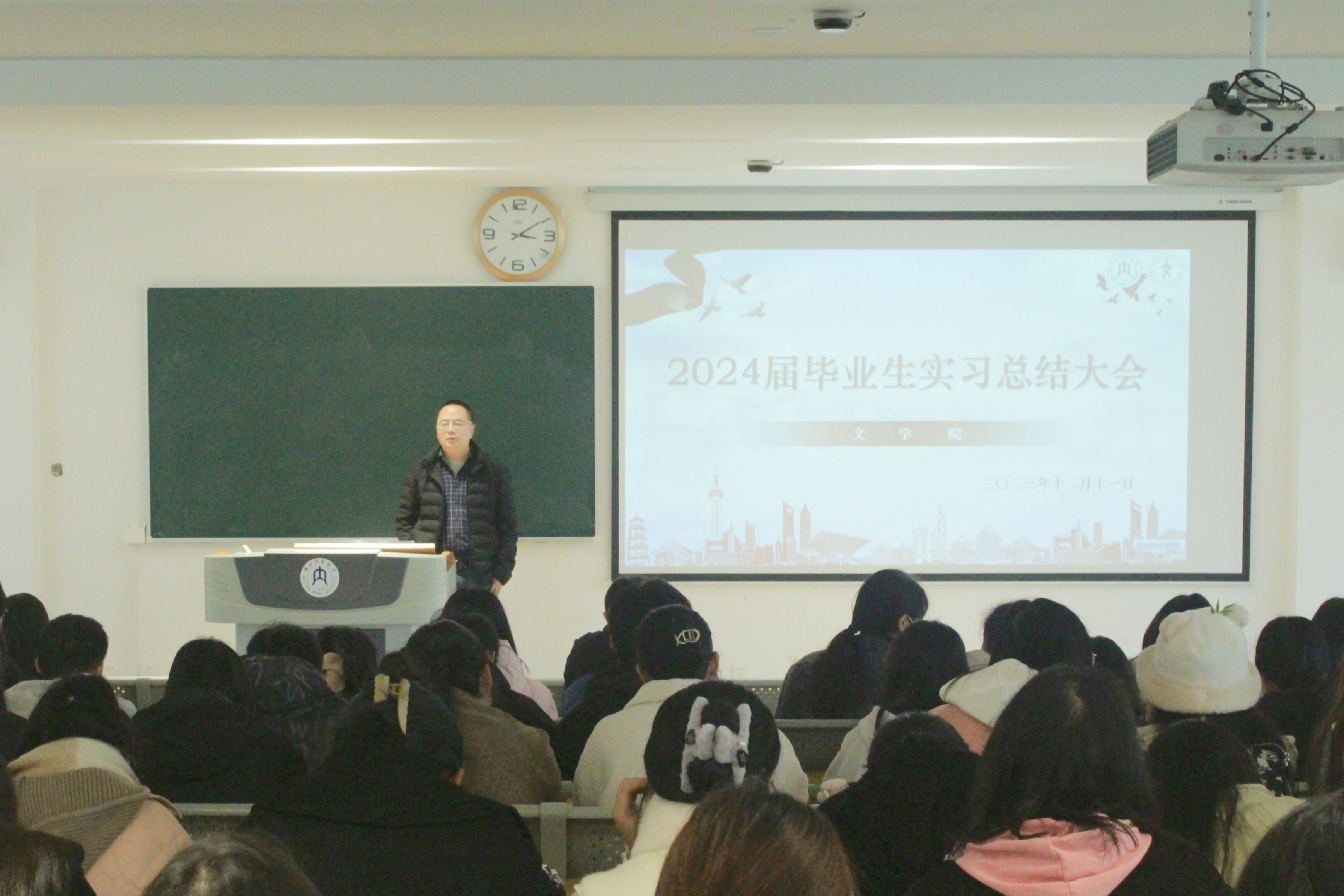 最后,甘老师就本次大会作出总结。他要求各位同学积极与老师交流沟通,时刻关注招聘信息,争取在有限的实习时间中汲取更多营养,收获更多经验。