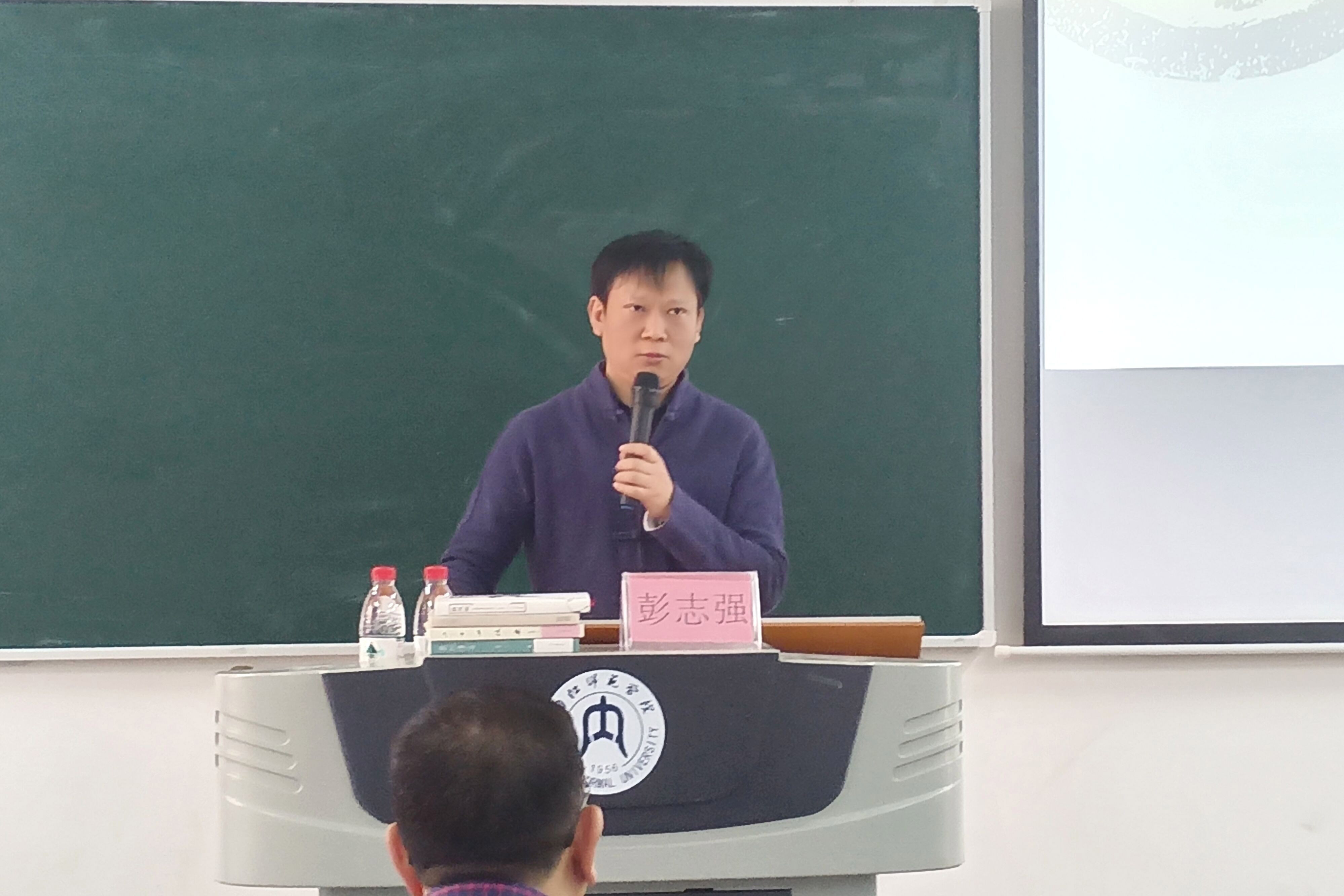 为传承中华民族诗词文化,提高同学们的文学素养,我院邀请了成都市作家协会副主席彭志强教授于4月8日下午2点在明德楼B区101教室开展“杜甫的家国情怀与封圣之路”专题讲座。内江日报原副总编辑、著名诗人、民俗文化专家黎勇,威远县职业技术学校原校长、著名诗人吉树奎,我院国学研究所所长翁礼明教授,我院副院长于军民以及我院部分同学参加了此次讲座。本场讲座由副院长于军民主持。