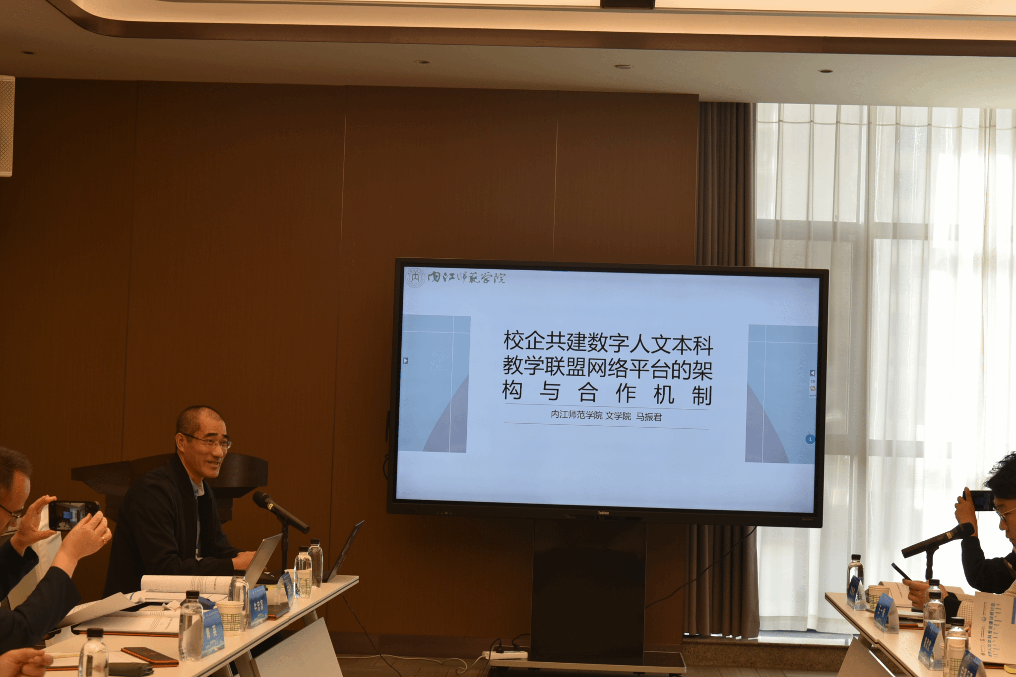 下午13:30开始分组研讨。围绕“数字人文本科专业建设”设立了“数字人文教育的综合实践”“数字人文教学的技术赋能”“数字技术应用与课程论”“数字人文教育的创新探索”四个主要议题。学者们分别从学科建设、课程建设、实践创新、理论研究等方面分享见解和成功实践案例。我校院马振君老师参加了第二组的讨论,担任上半场的主持人,并以《校企共建数字人文本科教学联盟网络平台的架构与合作机制》为题,提出建设校校、校企合作共建数字人文本科教学联盟(或共同体)的必要性。倡导以数字人文企业为技术核心,以高校为共建伙伴,创建数字人文本科教学联盟网络平台,包括教学资源、本科创新项目孵化、各校特色项目、学术社区四大板块,实现资源共享、顺畅交流、合作共赢,切实解决资源不足的痛点问题。马老师的发言得到与会学者的共鸣,认为指出了当前各校面临的困境,提出了切实可行的合作方案,应该专门会商使之落地。