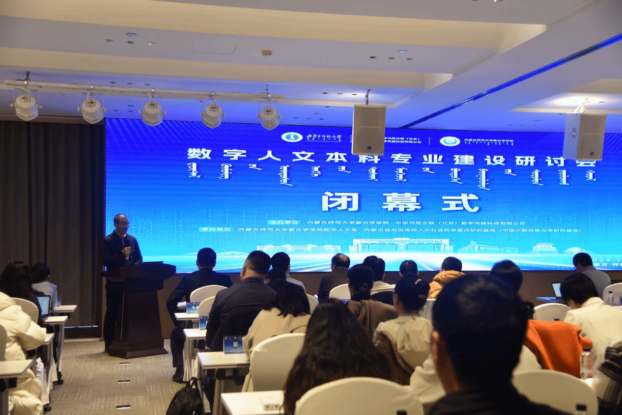 2024年11月16日,第一届“数字人文本科专业建设研讨会”在呼和浩特召开。会议由内蒙古师范大学蒙古学学院、中华书局古联(北京)数字传媒科技有限公司主办,内蒙古师范大学蒙古学院数字人文系、内蒙古自治区高校人文社会科学重点研究基地(中国少数民族文学研究基地)承办。与会学者来自中国社会科学院文学研究所、清华大学、北京大学、中国人民大学、北京师范大学、上海师范大学、内蒙古师范大学、贵州师范大学、内江师范学院、昆明学院、青岛恒星科技学院等20余科研院所、高校、企业,并有多名内蒙古师范大学的博士、硕士研究生参会。