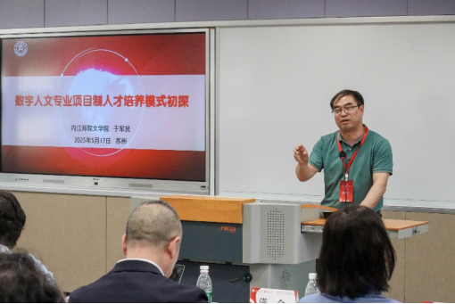 分论坛会议于17日下午14:00开幕,嘉宾们在数字人文培养体系、数字人文课程建设等议题做了会议发言。我院于军民副院长参与议题一:“数字人文培养体系与学科建设前瞻”的研讨,做了题为“数字人文专业项目制人才培养模式初探”的会议发言,介绍了内江师范学院数字人文专业以项目驱动的数字人文本科生培养体系,分享了以古籍数字化、数字考古等项目为驱动核心的课程、体系建设经验。