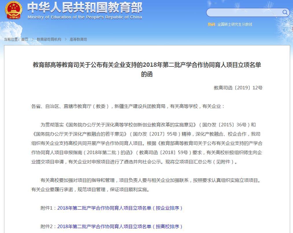 产学合作协同育人项目是教育部为贯彻落实《国务院办公厅关于深化高等学校创新创业教育改革的实施意见》(国办发〔2015〕36号)和《国务院办公厅关于深化产教融合的若干意见》(国办发〔2017〕95号)精神,深化产教融合、校企合作,创新产学合作协同育人机制,汇聚国内外知名企业资源支持高校专业综合改革和创新创业教育的人才培养改革项目。