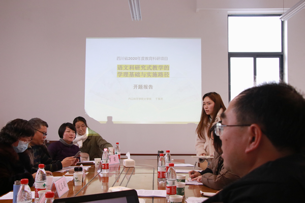 由我院于军民教授主持的四川省教育科研资助金项目“语文科研究式教学的学理基础与实施路径”于2021年12月31日在文学院会议室召开开题报告会。会议邀请了内江市语文教育专家赵群英、潘利英、黄自友、雷嗣洪、罗莉等对课题进行了评议。课题组全体成员、项目学校教师代表及我院学科教学论教研室全体教师参加会议。