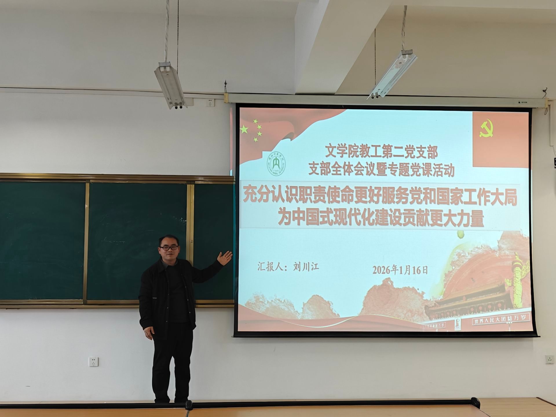 1月16日上午,文学院教工第二党支部在弘文楼502教研活动室开展了组织生活会。会议由党支部书记刘川江主持,支部全体党员参加。