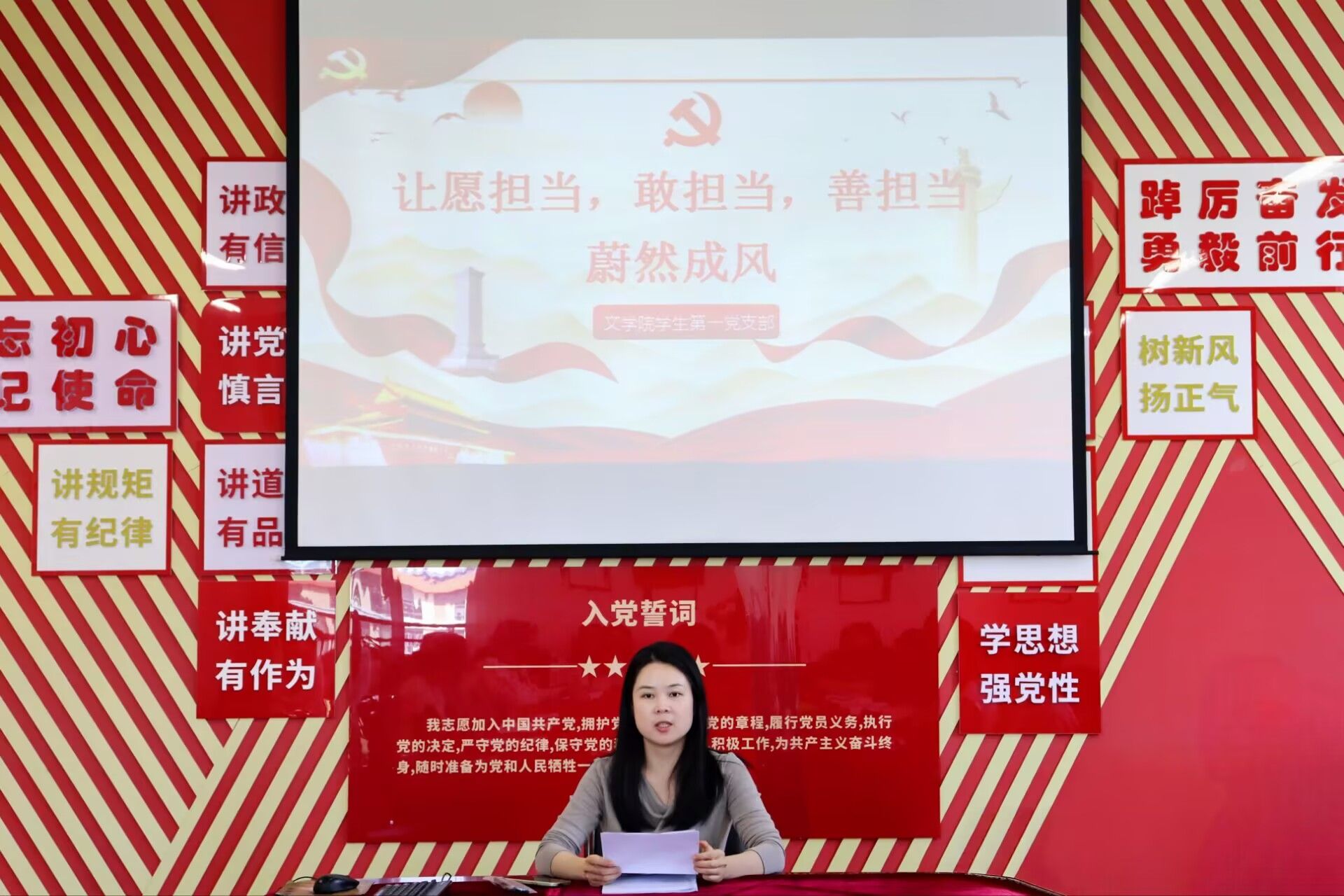 为持续深化党员思想政治教育,筑牢青年党员理想信念根基,引导支部党员坚守为民初心、恪守权力底线、涵养担当精神,4月25日上午10点30分,我院第一党支部四月主题党课在弘文楼506教室顺利开展。本次党课以让愿担当,敢担当,善担当蔚然成风为核心主题。