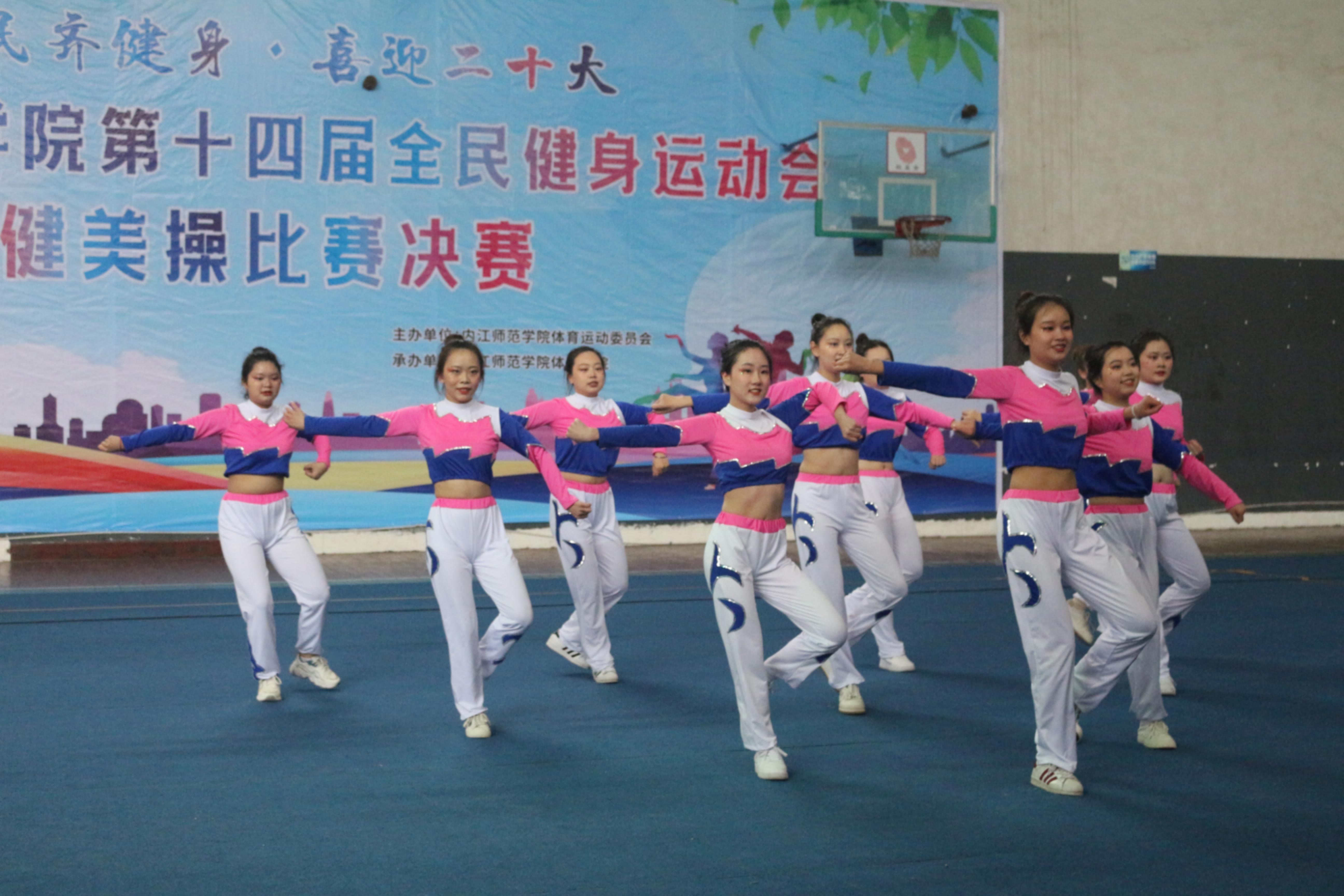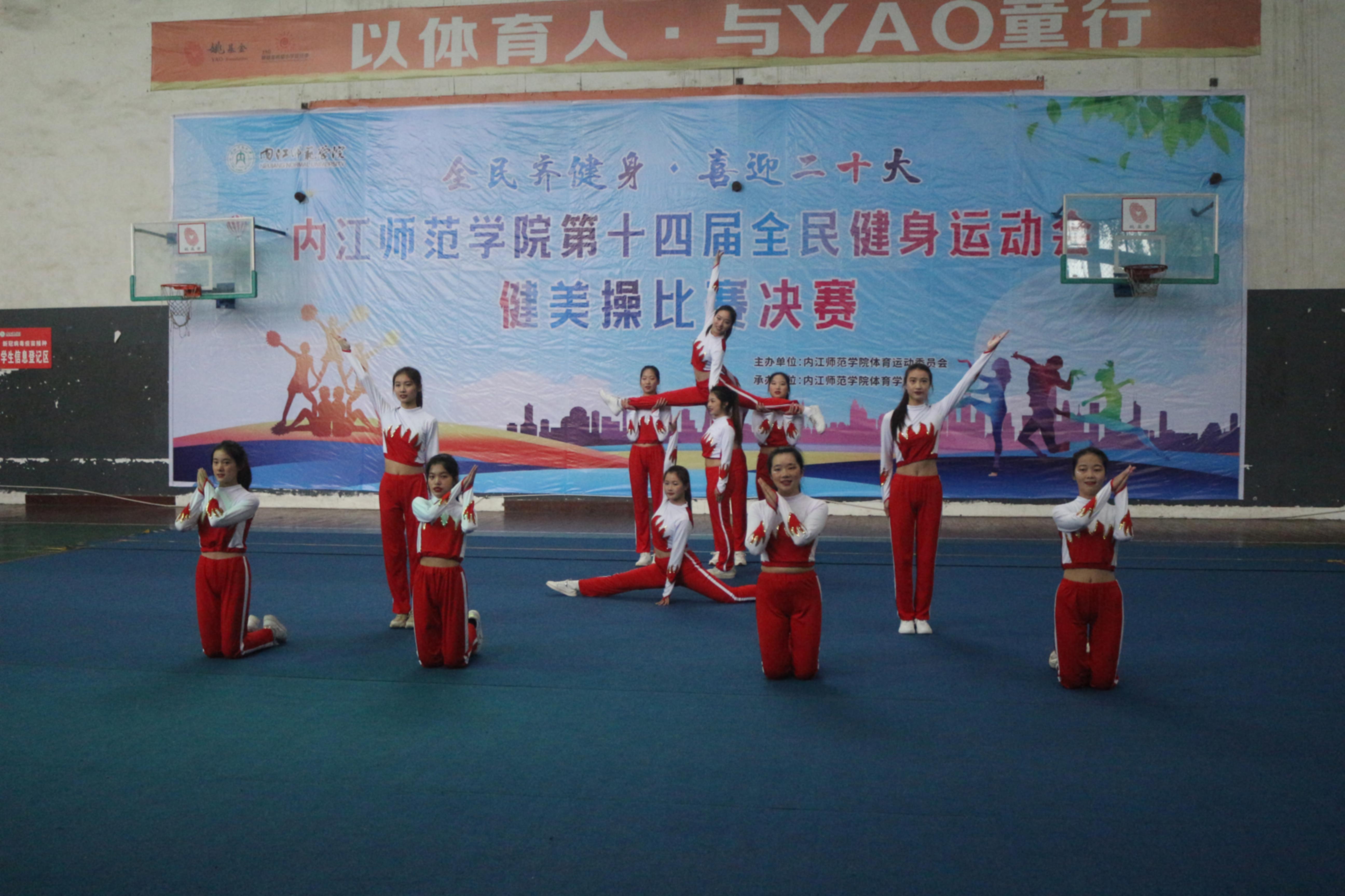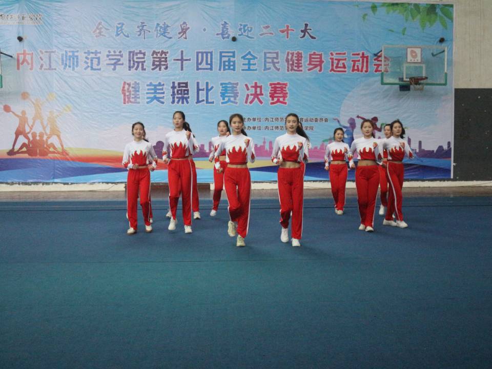 5月15日上午8点至12点,内江师范学院在桐梓坝校区篮球馆举办了主题为“全民齐健身·喜迎二十大”的第十四届全民健身运动会健美操比赛决赛。出席此次大赛的领导和嘉宾有学校党委学生工作部、武装部部长商林威,党委学生工作部、武装部副部长王强龙,体育学院党总支书记李才宝,体育学院体操教研室主任马传奇。