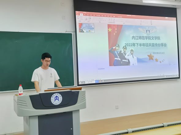 为深入开展国防教育,增强我院学子的爱国热情和民族自信,激励青年学子们应征入伍。5月28日晚7点,我院于明德楼B区101教室开展了“我的军旅生涯之征兵”宣讲活动。第七届团总支学生会主席团成员张浩主持此次活动,2019级2班苏文洁担任主讲人,我院2019级、2020级、2021级部分同学参与此次活动。
