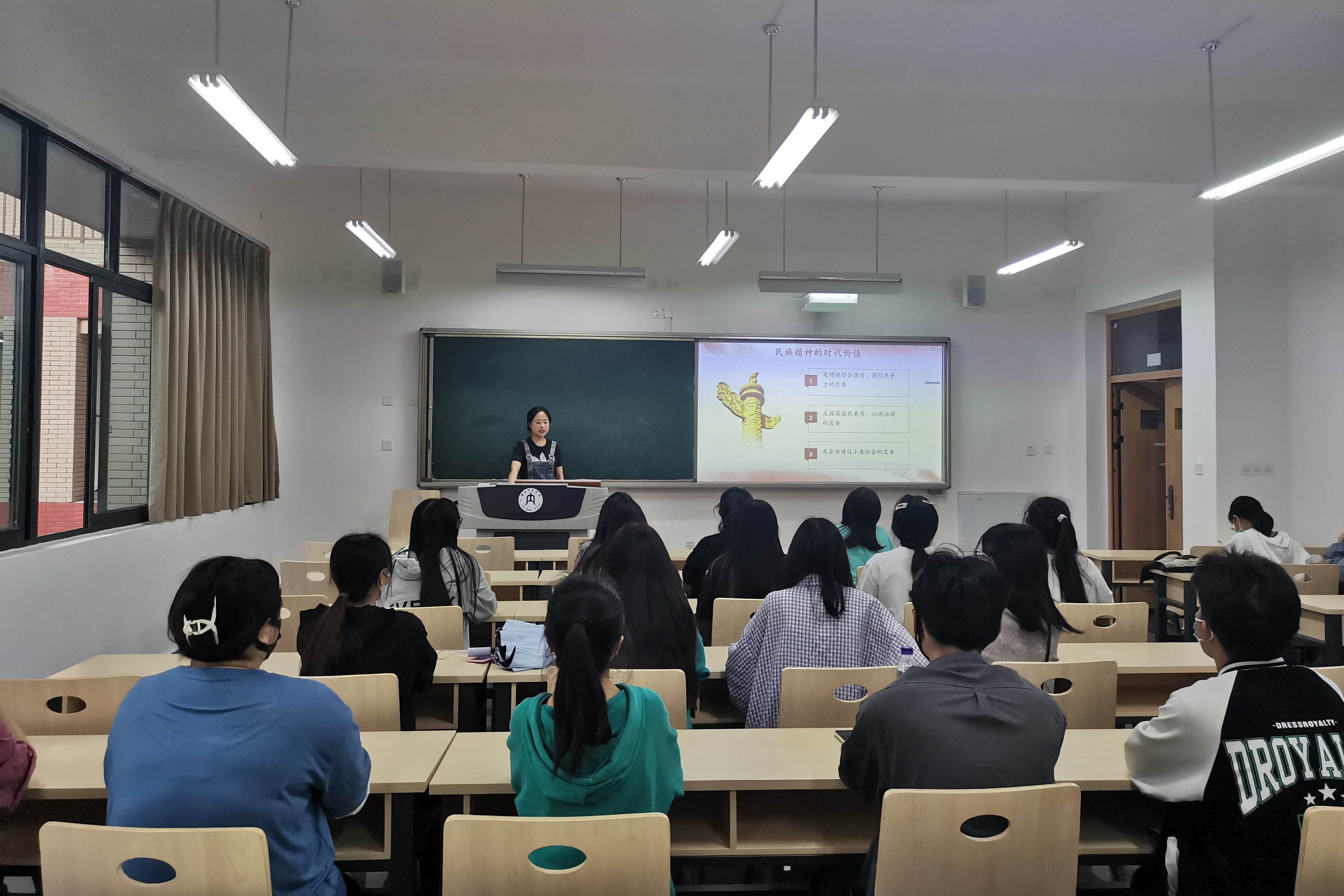班会伊始,甘老师向同学们详细介绍了民族精神的具体内涵,并提出了民族精神所具有的时代价值,希望大家能清晰地认识到民族精神的时代意义,弘扬和传承伟大的民族精神。随后,甘老师结合实例让同学们对创新创业有了深层次的认识,点燃了同学们对于创业的兴趣和热情。同时,他提到作为大学生的我们应树立创新创业的意识,秉承“要创业,先创新”的理念,为今后进入社会提前做好准备。班会最后,甘老师带领大家对人文素质教育进行深刻讨论,同学们踊跃参与,积极交流,在了解素质教育相关知识的同时,也树立了正确的价值观念。