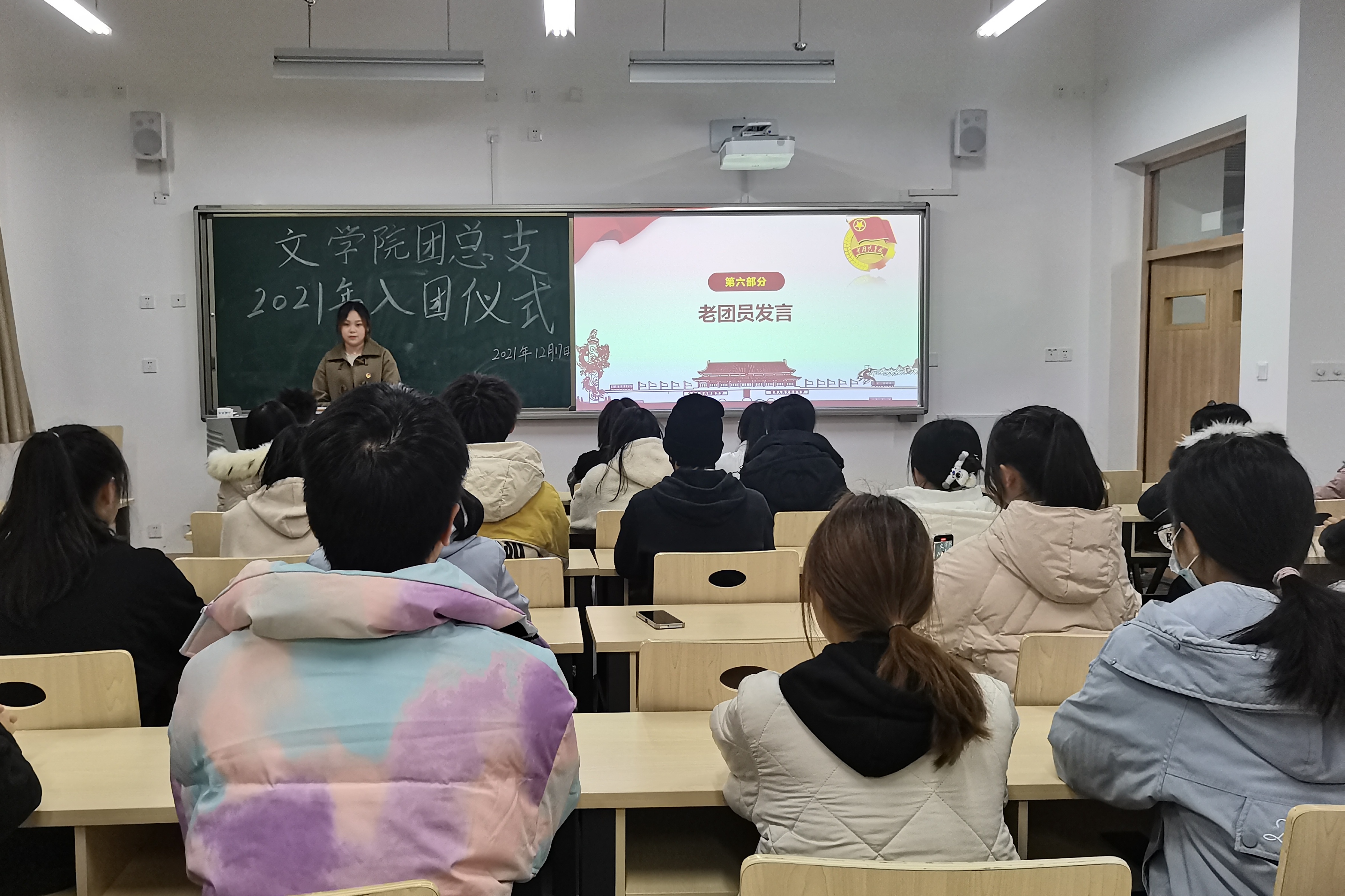 12月17日晚上7点,我院在明德楼B区121教室举行了新发展团员入团仪式。我院团总支组织部全体成员,2021级各班团支书及6名新发展团员参加了此次会议,会议由组织部志愿者吴丽莎主持。