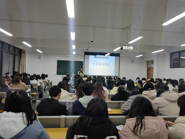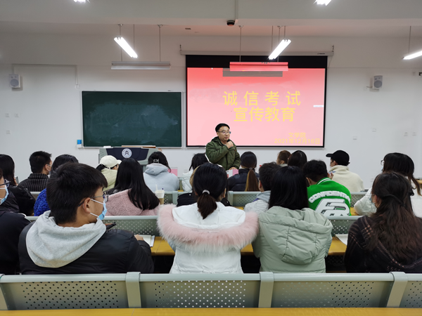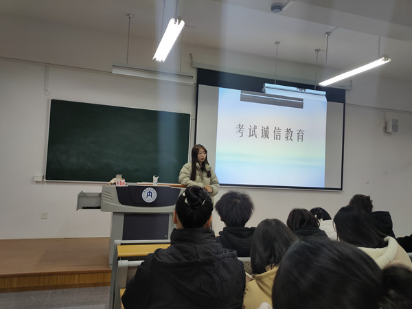 为严肃考纪考风,加强同学们的诚信参考意识,我院各班级在12月召开了以“考试诚信教育”为主题的班会。其中2021级7班于12月24日晚7点在明德楼B区201教室召开了“考试诚信教育”主题班会,此次班会由辅导员汤靓主持。