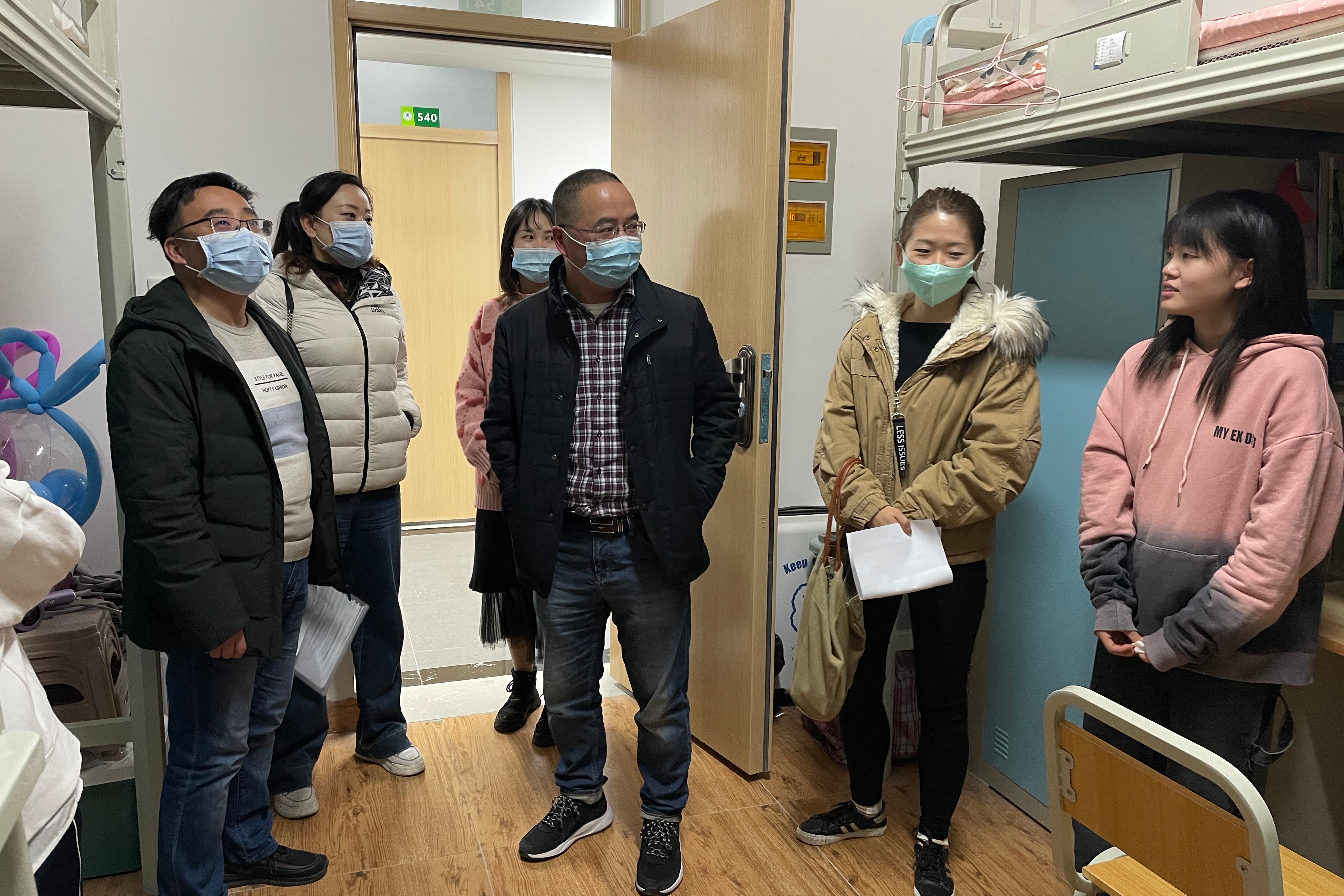 为进一步了解入住新校区后同学们的学习生活情况,11月14日晚7时,我院党总支副书记周艺(主持工作),党总支副书记刘正丽,辅导员孙波、汤靓、金夏走访了大千苑18-1栋女生宿舍以及18-2栋男生宿舍。