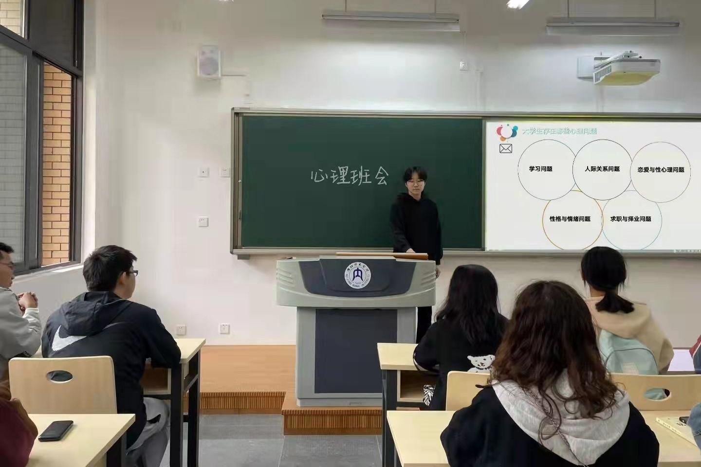 为了全面贯彻党的教育方针,推进素质教育,加强和改进学生心理健康,提高学生心理调节能力,培养良好心理素质,促进学生思想道德素质和心理健康成长。10月14日早上10点,我院2021级5班全体同学在新校区明德楼107教室开展“关注自我,关爱他人”——人际交往与心理健康主题班会。此次会议由心理委员应赛楠同学主持。