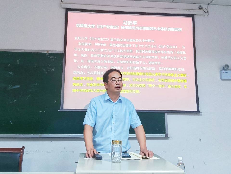 此次党史课,李书记首先以习近平总书记给复旦大学《共产党宣言》展示馆党员志愿服务队全体队员的回信作为切入点。他强调,我们青年大学生特别是青年党员要深入学习贯彻习近平总书记关于党史学习教育的重要论述,认真领悟“四史”,紧跟党的脚步,为实现中华民族伟大复兴的中国梦贡献自己的力量。随后,李书记以自身生活为例,生动形象地讲述着改革开放四十年以来的变化,并为我们讲述了中国是如何成为全球第二大经济体的。最后,他提到改革开放正是以邓小平同志为代表的中国共产党人带领中国人民富起来的必经之路,是共产党的一次伟大觉醒。