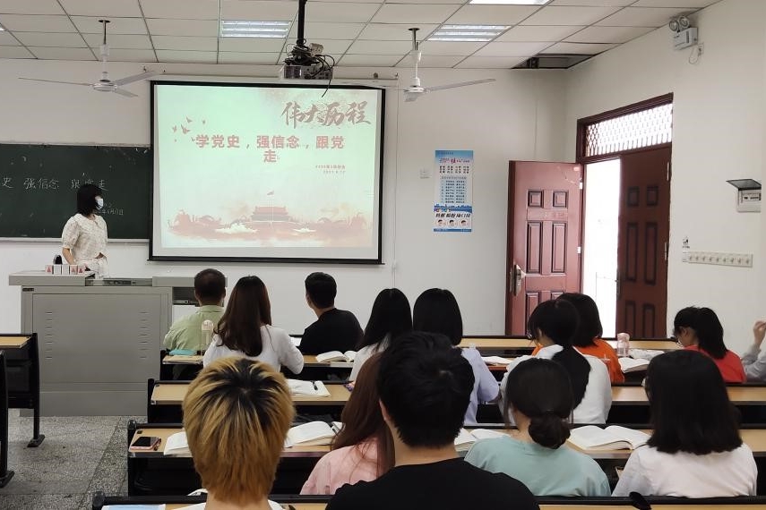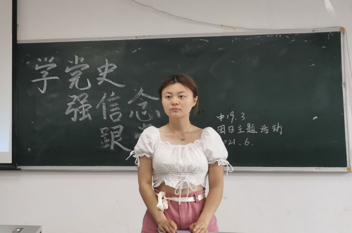 学百年党史,忆百年初心,做时代新人,砥砺奋进担使命。在本次的团组织生活会上,文学院各支部通过不同的形式重温党史,在党史学习中感受中国共产党的百年力量。在2018级5班的团组织生活会上,团员代表许红英为大家倾情朗诵诗歌《可爱的祖国》,将党史学习与方志敏烈士的散文选段融合在一起,带领同学们一起感受共产党人视死如归的革命精神。为激发同学们党史学习的兴趣,2020级2班的团支书给大家播放了热播影视剧《觉醒年代》的高燃视频片段,并对剧中为国家不断寻找发展出路、不怕牺牲的优秀共产党员做了着重介绍。最后,各团支部组织演唱《唱支山歌给党听》、《党旗更鲜艳》等歌曲来庆贺中国共产党百年华诞,用歌声表达对党的无限深情。