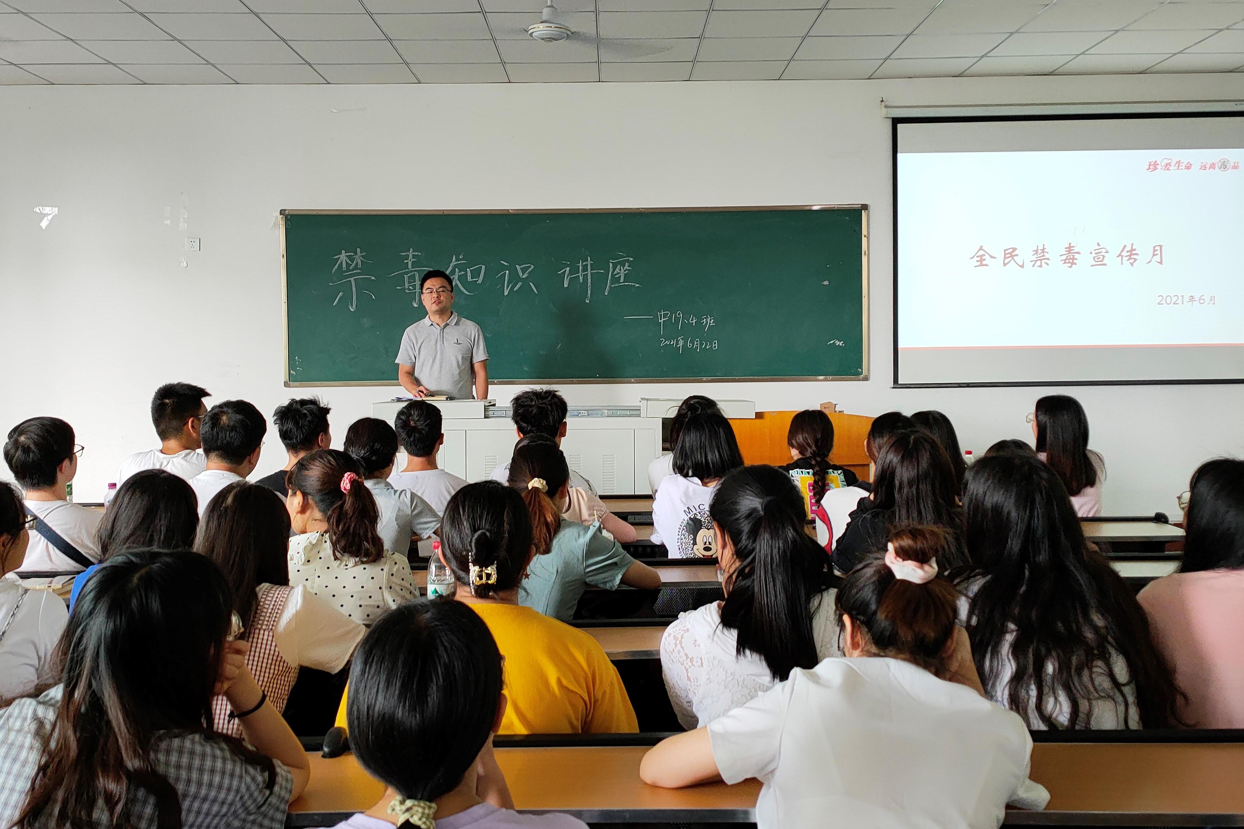 会上,许老师首先带领大家学习了《关于加强新时代全民禁毒宣传教育工作的指导意见》,然后许老师根据自身在凉山的工作经历,以自己的实际禁毒工作经验告诉同学们吸毒不仅危害个人身心健康,祸及一个家庭及其后代子孙,而且危害他人和社会。随后,许老师还说,人们吸毒一方面可能是为了追求刺激感,另一方面可能是对于毒品知识的了解不够充分。最后,许老师提到,一旦沾染上毒瘾,对于一个人的危害是毁灭性的。他建议同学们要规避不健康的生活方式,寻找合适的方法宣泄不良情绪。