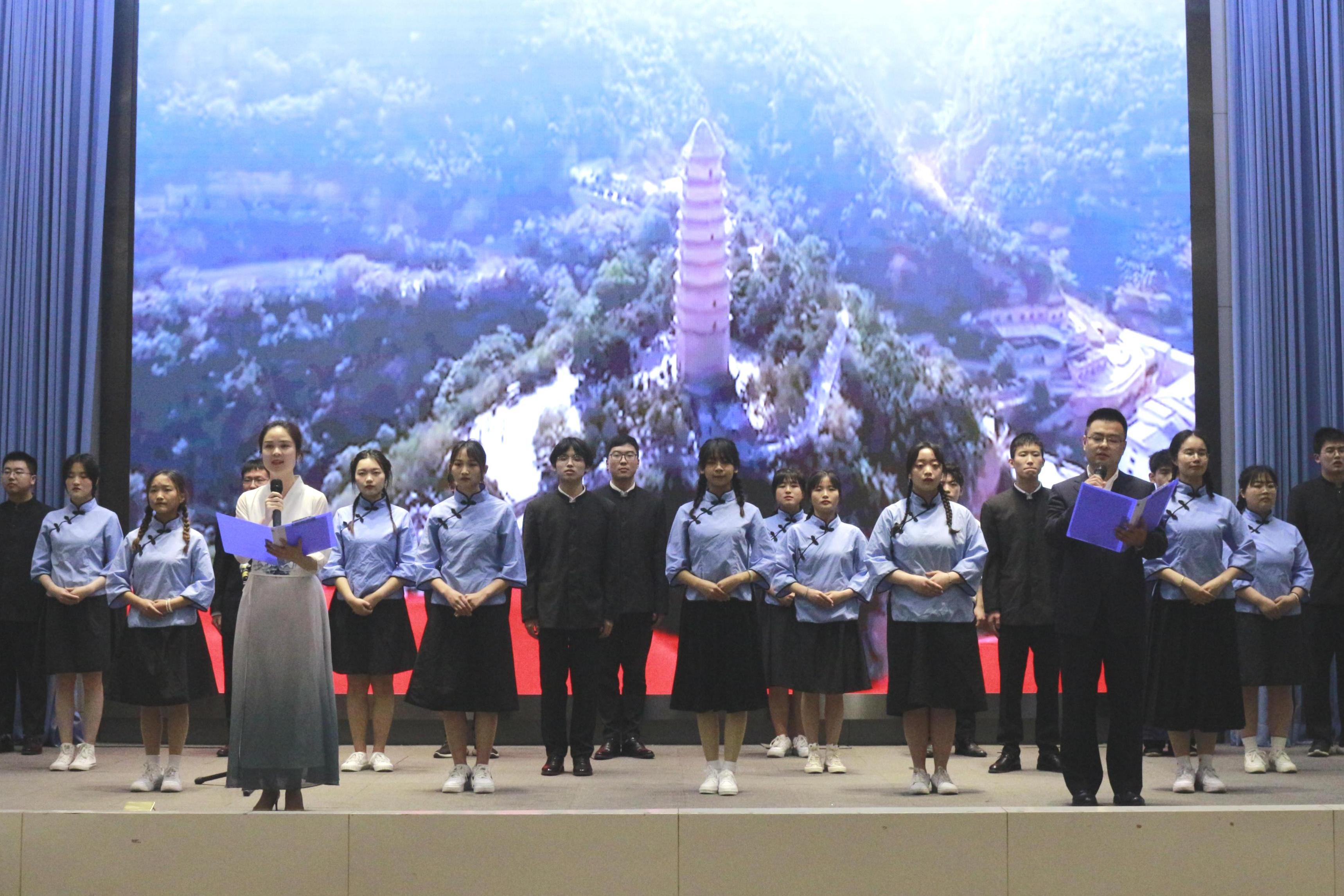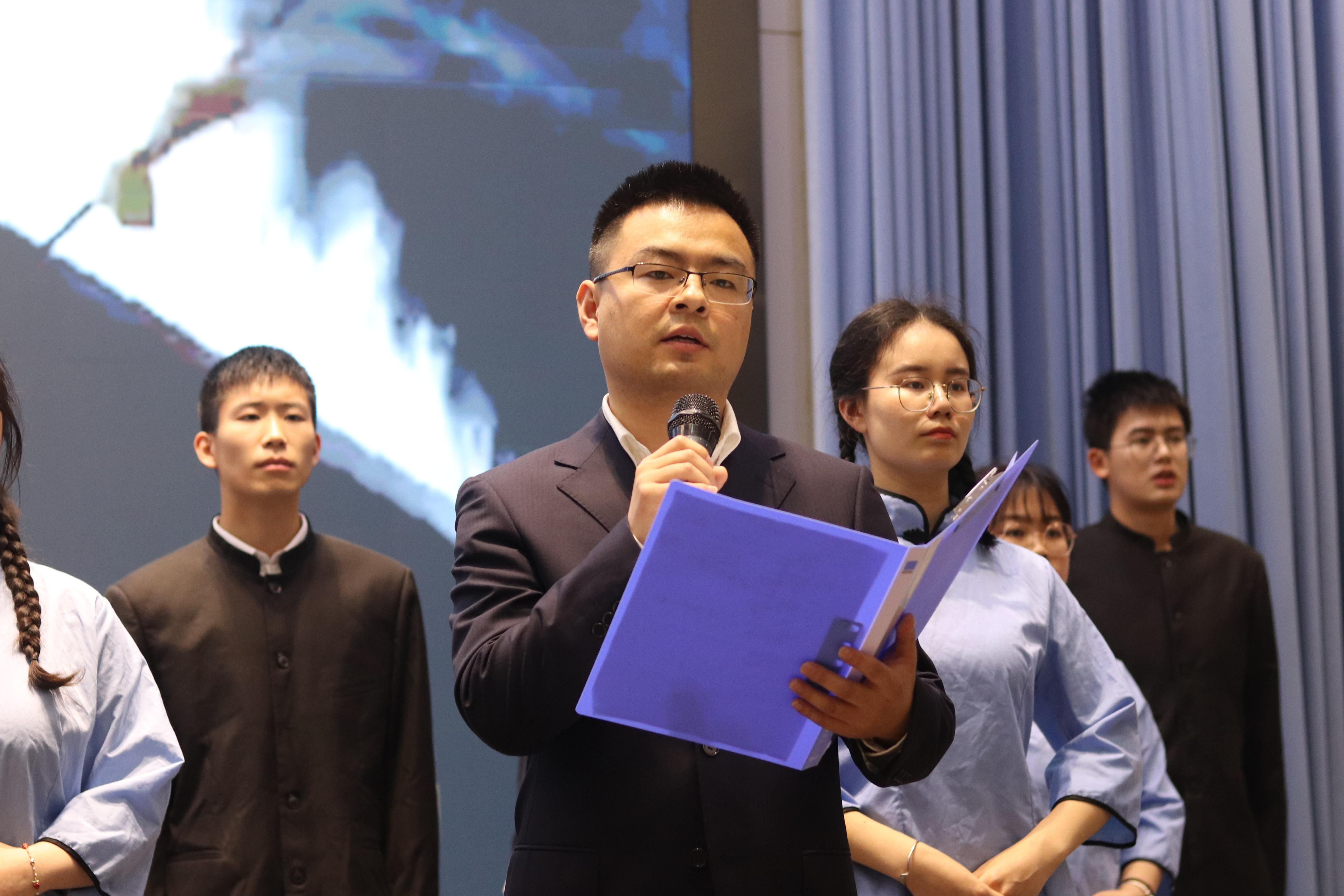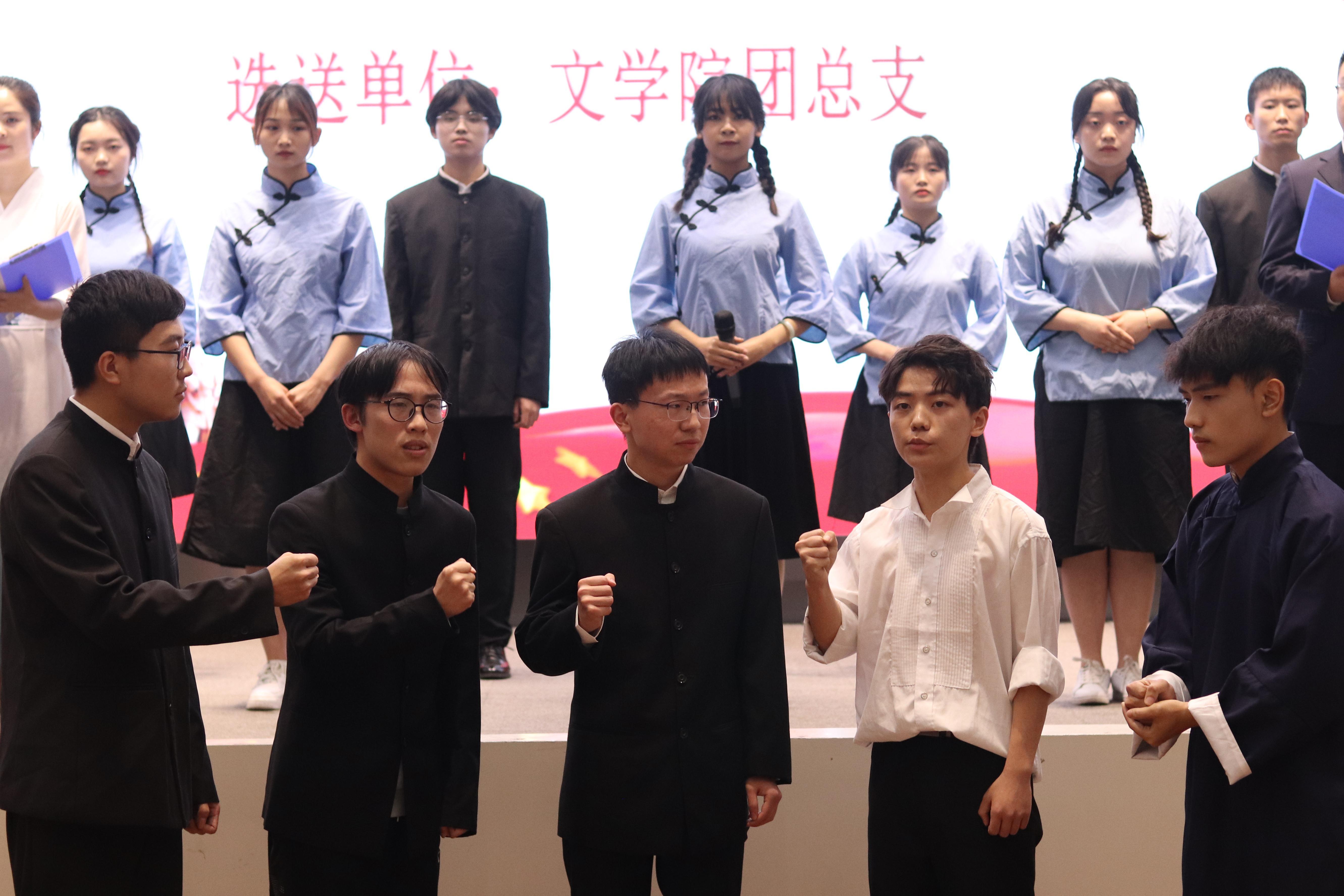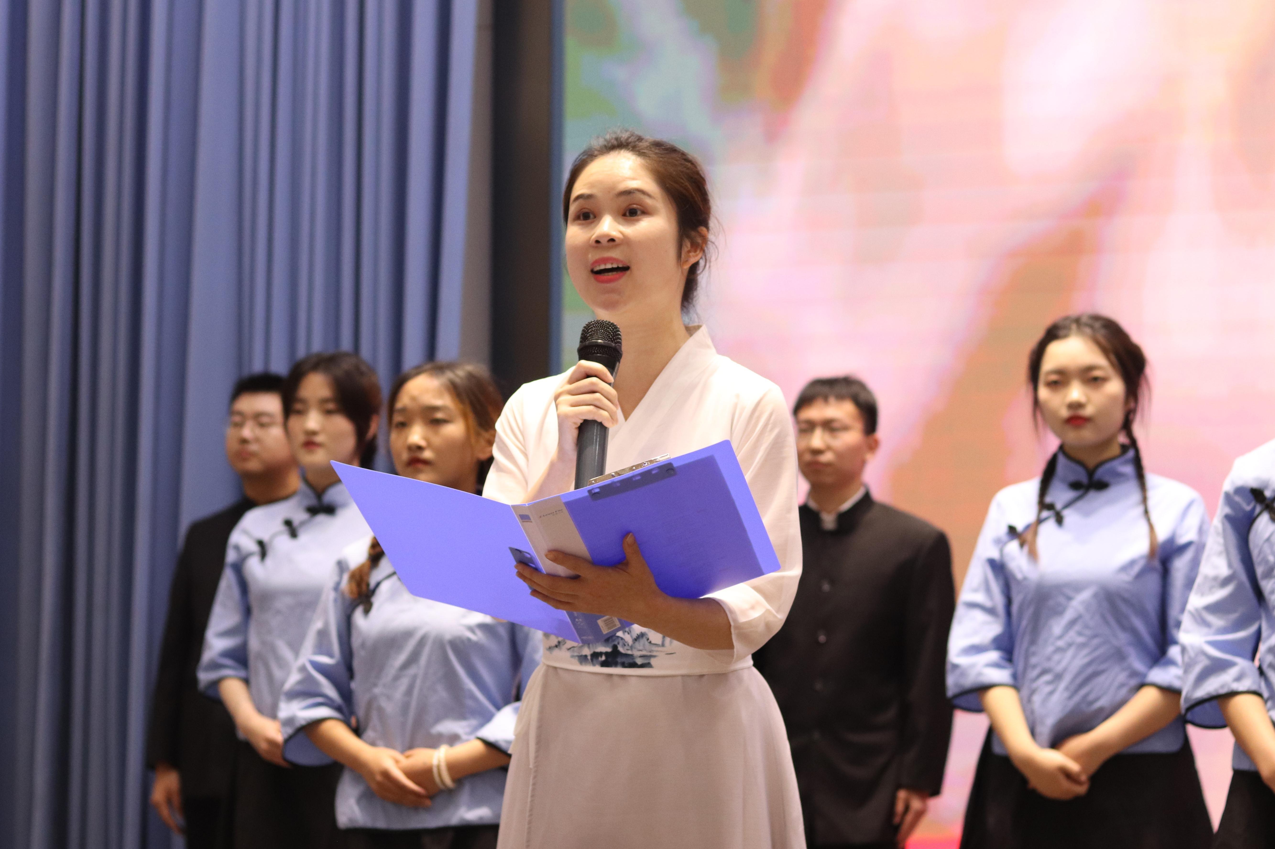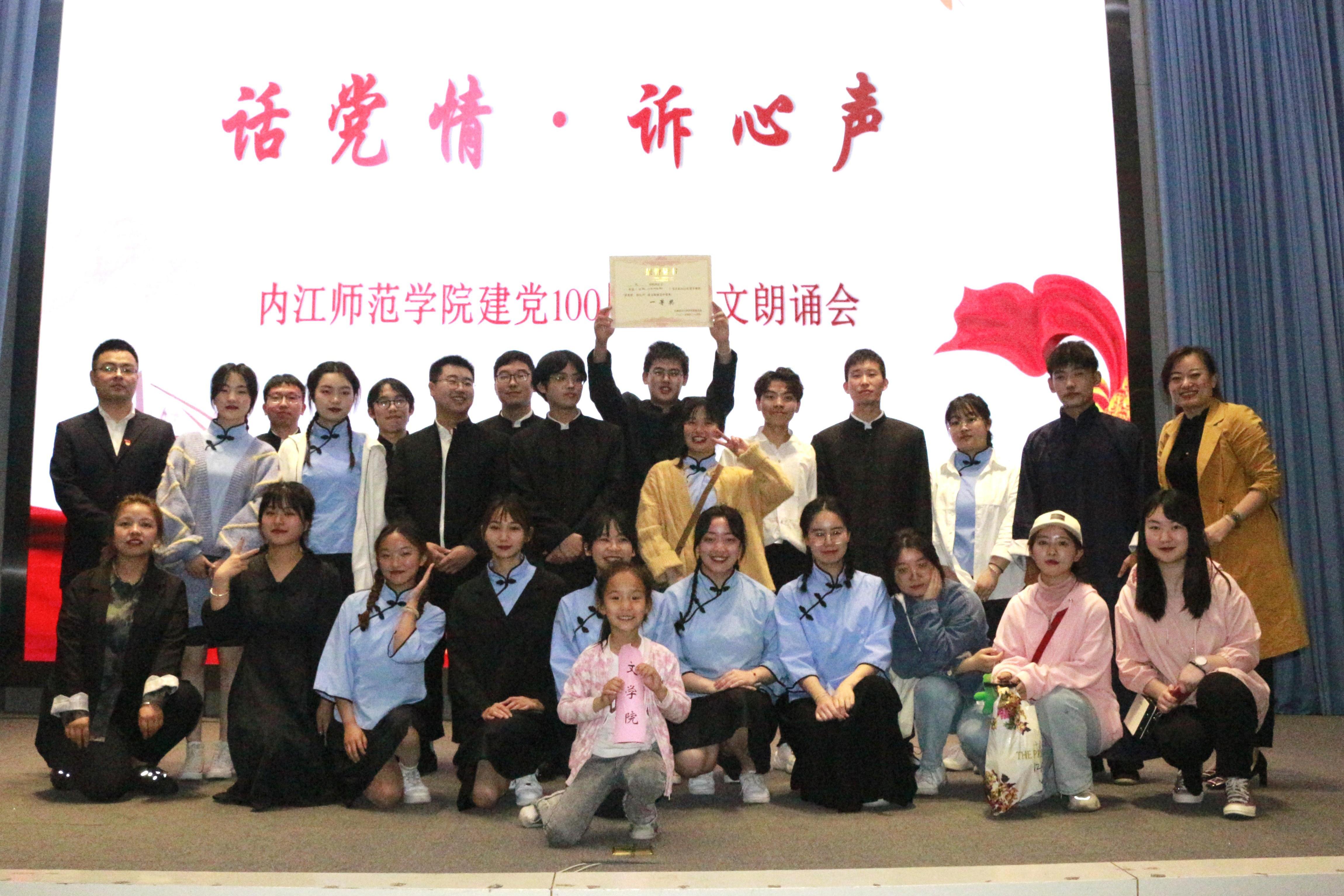 比赛在政管学院带来的《共产党信念永恒》中拉开序幕,我校17个二级学院所率领的17支参赛队伍以诗诉情,以诵忆党,热情讴歌了中国共产党领导中国革命建设中所取得的丰功伟绩。我院团总支书记许小涛,辅导员金夏,以及曹雨、刘雨阳等多名同学携诗文《红船,从南湖起航》共同参与此次比赛。《红船,从南湖起航》围绕一条红船从南湖启航,就此开启民族复兴的伟大航程这一历史背景展开。朗诵过程中,我院师生紧紧围绕主题,将朗诵与音乐相融合,用饱含激情的语言诠释了党在百年历史中的峥嵘岁月,向党的百年华诞深情献礼,赢得了在场观众的热烈掌声。经过一番激烈比拼,最终我院以及音乐学院、范长江新闻学院荣获一等奖。