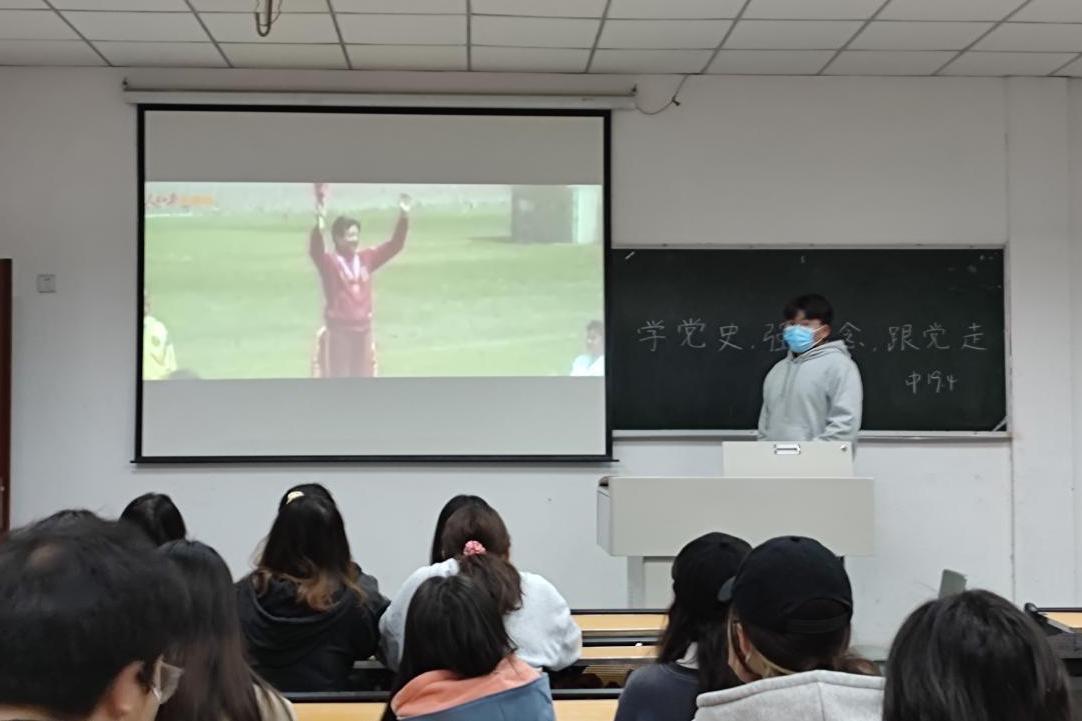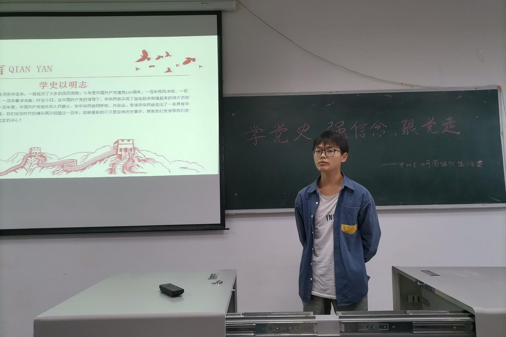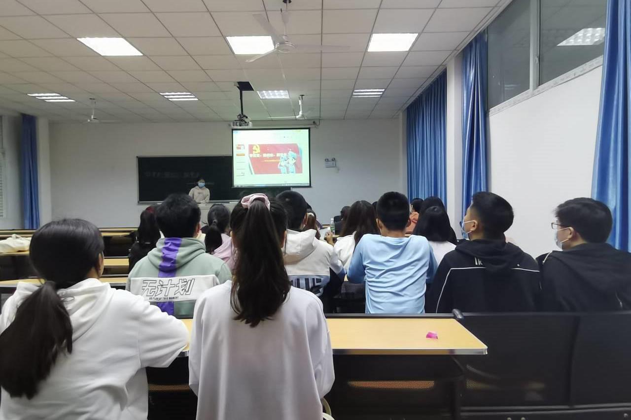 会议在团歌声中正式开始。首先,团支书以“全国优秀共产党员”、云南省丽江市华坪县女子高级中学党支部书记、校长张桂梅为例,介绍她在忙碌的工作与生活中不忘学习党史,将自己无私的爱奉献给党和人民。通过学习先进党员的事迹,有利于发挥其先进典型示范引领作用,激励和引导广大共青团员树立正确的思想价值观。随后,团支书谈到中国共产党从建党初期的六十多人,发展壮大到现在拥有九千多万党员的世界第一大党,从一穷二白到独立富强,这离不开党坚韧的意志和非凡的智慧。一个先进的执政党需要不断克服外界不稳定的因素,克服自身长期执政的风险,提高执政能力和领导水平。最后,团支书提醒大家通过微信公众号进行党史的答题学习。习近平总书记强调,“历史是最好的教科书”,不仅要学,而且必须学好,力求做到明理、增信、崇德、力行。党史学习有利于青年学生不断加深对习近平新时代中国特色社会主义思想的理解,加深对党的初心使命的感悟,筑牢不忘初心、牢记使命的思想根基,从党员中汲取精神力量,保持锐意进取、永不懈怠的精神状态。