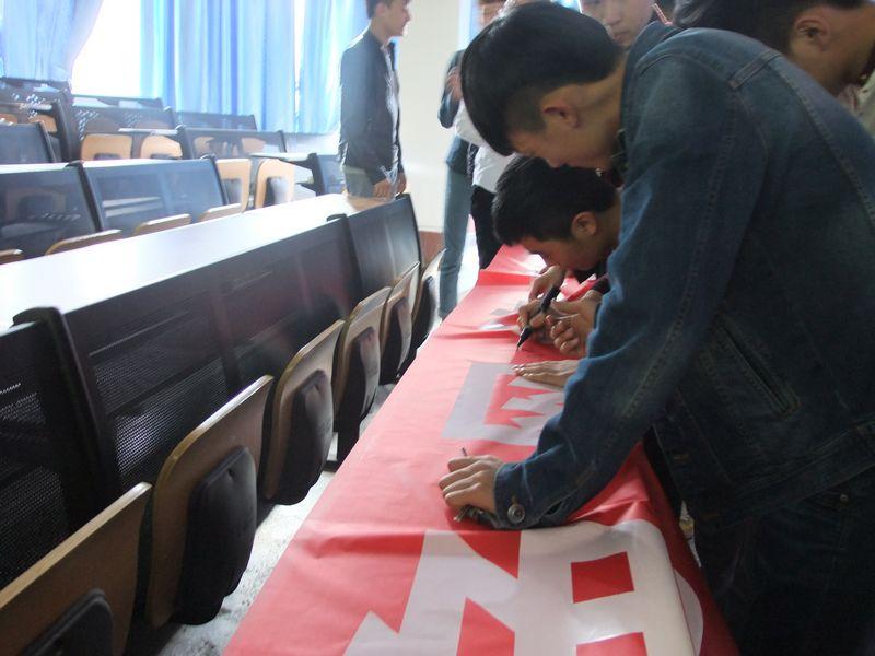 会议结束后,康老师带领全体学生干部、干事进行了签名活动,表达了争当注册志愿者以及网络文明志愿者的决心与担当。