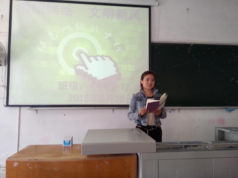 在2012级2班的主题班会上,首先是由班委向同学们播放了有关网络正反意义的视频,详细给同学们展示文明上网和不文明上网所带来的利弊。紧接着,班委积极组织大家进行讨论关于文明上网的看法,班长陶一中和何孟婷率先发言,同学们对于这个问题畅所欲言,都进行了深刻的描述。班会最后,班主任易晓慧老师对此次班会活动做了总结,她告诫同学们应该通过书本来充实自己,规范自己的上网行为,做到文明上网。在其他班级的班会上,各班同学与老师更是畅所欲言,阐述了自己心中对于清朗网络的看法,认识到了网络文明对于生活的力量。
