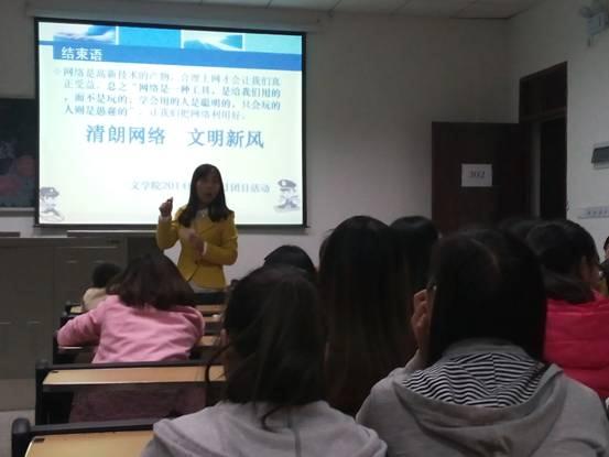 互联网影响和塑造着青年,青年也影响和塑造着互联网。为响应党和国家号召,3月中旬文学院、范长江新闻学院各班级在其精神影响下,分别在中文楼各个开展了“清朗网络,文明新风”的团日活动,此次团日活动气氛热烈,达到了十分良好的宣传效果。