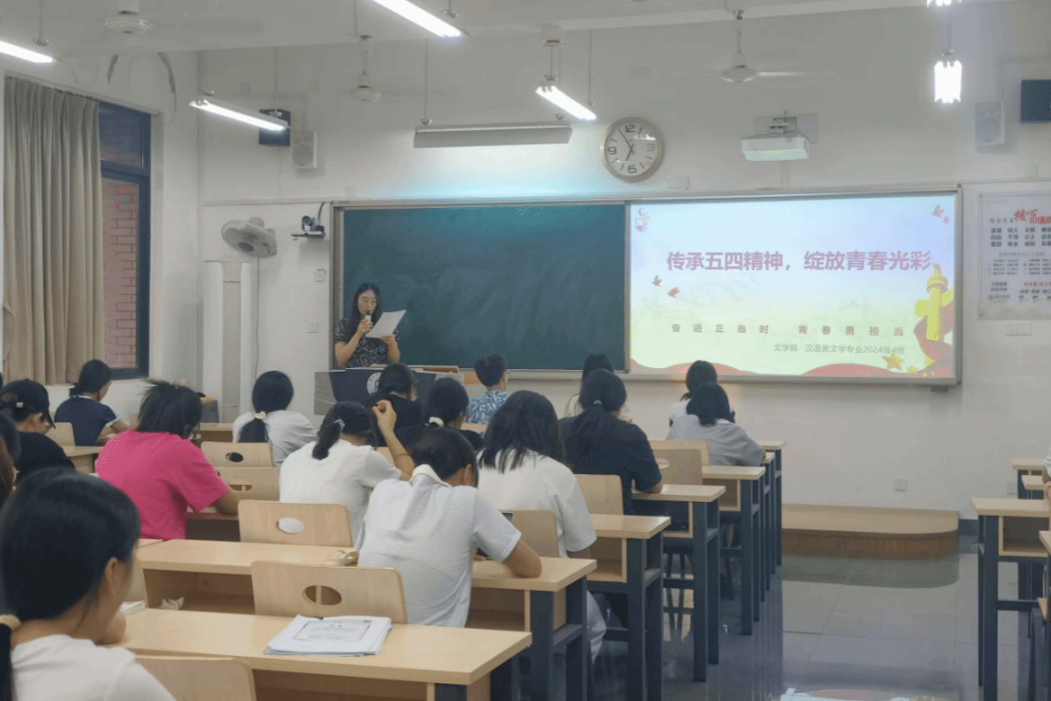为传承和弘扬五四精神,激发同学们的爱国热情与奋斗动力,2025年5月21日晚上6点50分,我院2024级4班在明德楼A区307教室开展以“传承五四精神,绽放青春光彩”为主题的班会活动。此次班会形式丰富、内涵深刻,由杨晓燕老师主讲,全班同学积极参与,现场氛围热烈。