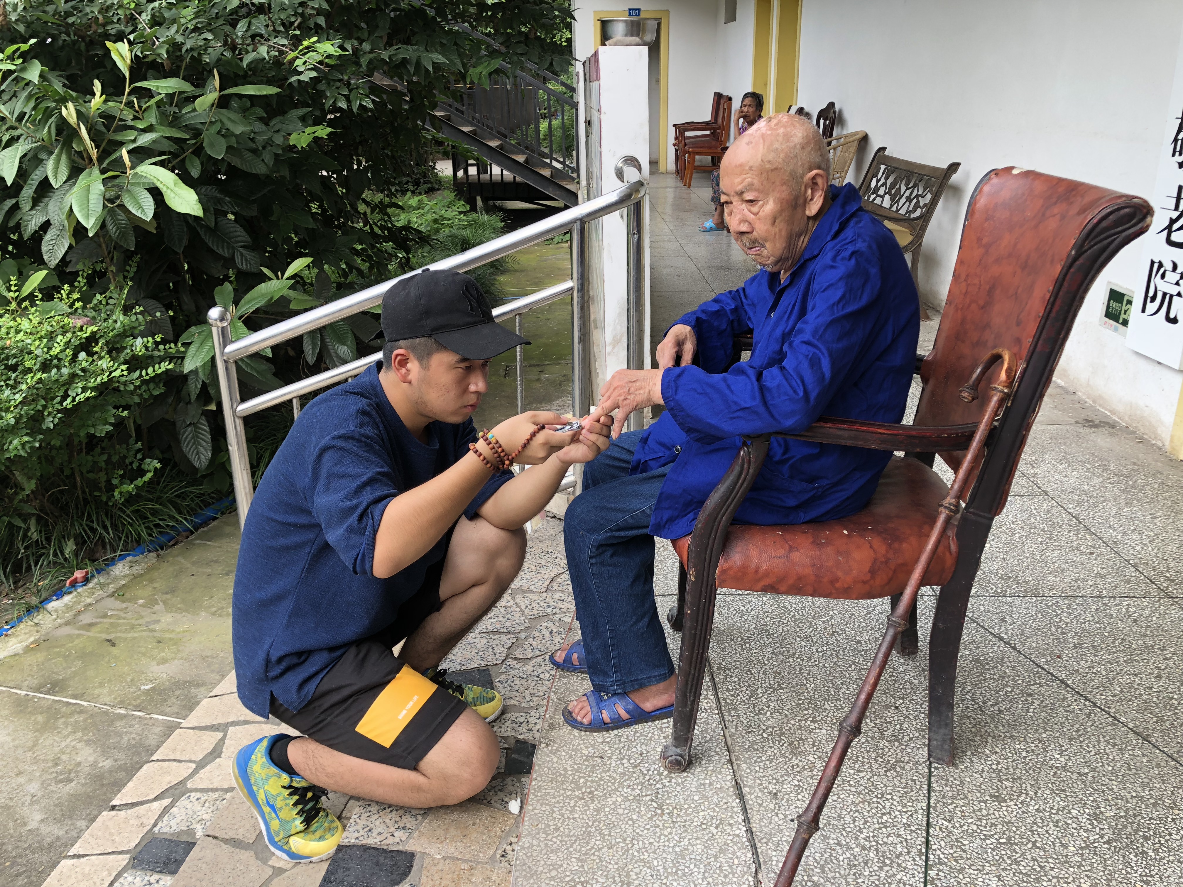 在整个志愿活动开展期间,每个志愿者各司其职。有的志愿者为老人们剪指甲,剃胡须,剩余的志愿者则拿起清扫工具,帮忙为老人整理内务,打扫卫生。