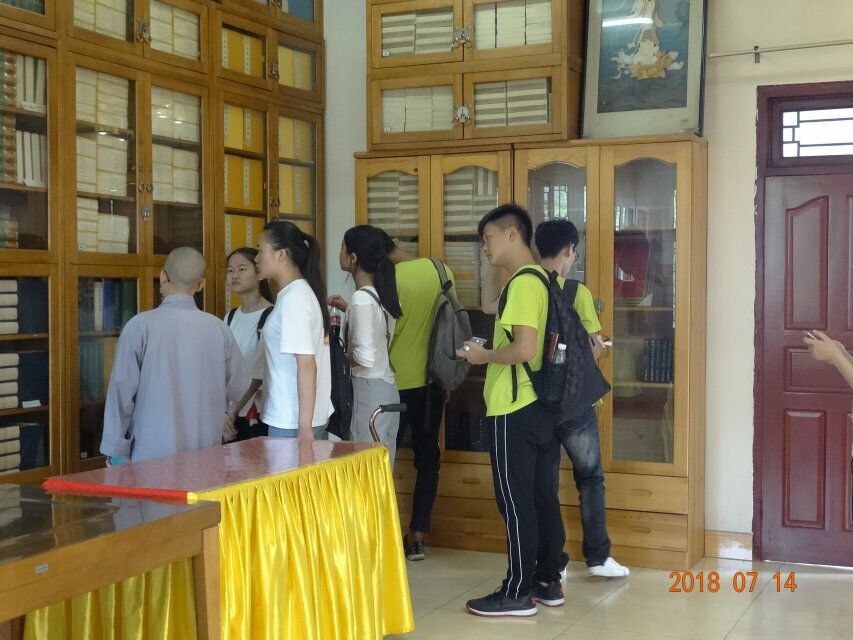 考察队员们与寺内本净师父交流,了解高峰寺的起源发展等。本净师父介绍每年的三月三是当地的一个习俗,人们祈愿吃斋饭,规模宏大。不仅有本地人参与这个习俗,更有不少外地人慕名而来。而且由她主持在寺内建立的图书馆,不仅有佛教经书,更有《资治通鉴》等史书、科技类书籍、各类工具书等,馆藏图书众多,涉猎范围广泛。这些图书有的是可供借阅的,有的是可赠送的。本净师父表示,现在的寺庙也不过是人们心灵慰藉的地方,我们要做的就是提供一隅净土。书是人类进步的阶梯’,人要终生学习,要广泛学习,只有在不断学习中才能进步,并把学到的知识运用到工作生活中,国家建设中。”
