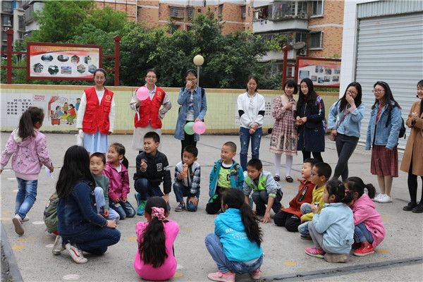 课堂上,组织部张燕同学给小朋友们讲解了几首清明节的诗歌,并教小朋友们诵读。她以温柔亲切的语言,向孩子们传授着博大精深的中国传统文化,极大地激发了小朋友们对传统文化的兴趣。课后,志愿者队与小学生们一起做游戏,玩了大字谜、老鹰抓小鸡等游戏。整个社区里洋溢着幸福、快乐的味道。