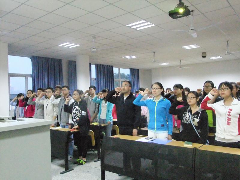 会议的最后,我院学生会组织部孙冬阳代表发起宣誓仪式,在场老师和学生纷纷跟随,高声宣誓:“我们绝不辜负期望,成为有梦想,有责任,有担当的中国当代大学生!” ( 图/文:唐维)