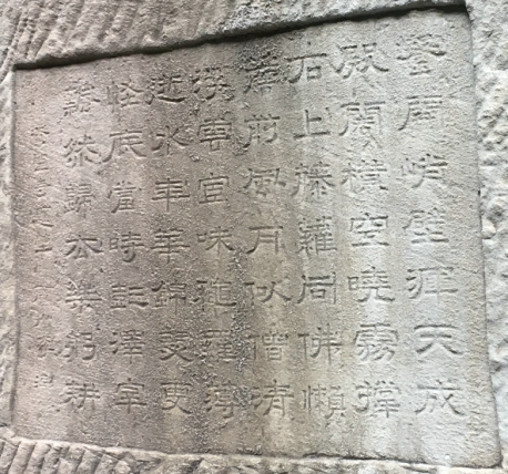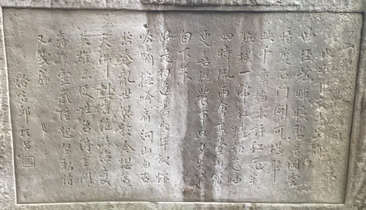 石刻内容:已分翔龍没蘚苔,雲堂霽意見重開。運如东海桑旋变,明到南華鏡不埃。從識河山真泡影,欲求乾淨在靈臺。寸隂尺壁君須寶,莫漫逡巡過去來。