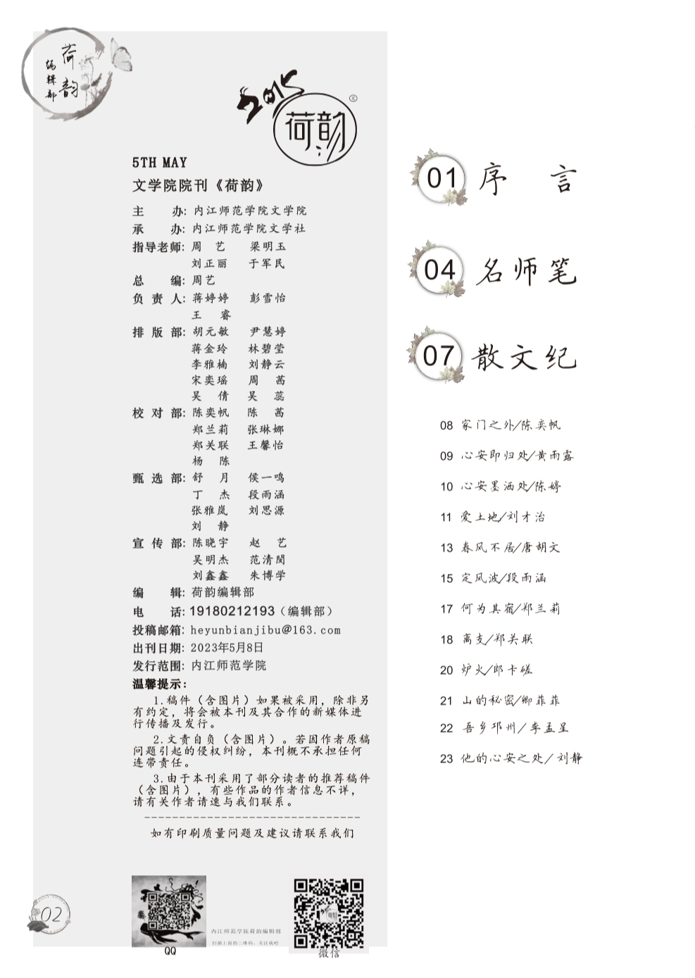 来源:文学院   作者:作者:荷韵编辑部   点击数:   日期:2023-06-22   字体:【