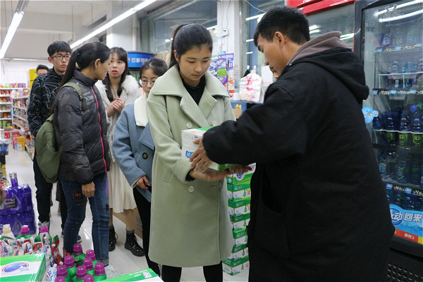 为鼓励我院考研学生坚持奋斗,给他们加油助威,12月20日下午6点,我院特别组织了一次慰问考研学生,为考研学子送温暖活动。我院学生会主席黄泽东带领团总支学生会部分成员参加了此次活动。