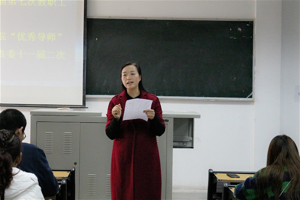 覃华艳副书记代表学院工会委员会向大会作了工会工作报告及工会财务工作报告,她就2017年工会着力加强学院民主政治建设、推进教职工职业道德建设、打造温馨职工之家等情况作了全面总结,并明确了来年工会的主要任务。她还代表学院工会委员会衷心感谢全体职工会员的大力支持和全力配合,希望大家在今后的工作中,一如既往给予工会工作关心、帮助和支持,共同为促进学院稳定发展、构建和谐校园作贡献。