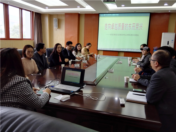 在遂宁东辰荣兴国际学校,兰处长、覃书记一行受到了该校领导老师的热烈欢迎。迄今,我校在该校工作的校友已达20余位。座谈会上,该校初中部培训中心张海英主任就学校概况、发展历程以及发展行动十大纲领作了详细介绍;李成刚、杜廷阳、高梦琪等10余位校友纷纷畅谈了他们扎根遂宁东辰荣兴国际学校的成长与收获,同时表达了对母校的拳拳感恩之心。该校校长助理刘洪文对我校毕业生给予了高度肯定,同时希望与我校进一步在毕业生实习和就业、课题申报等方面加强合作。兰处长、覃书记对东辰给予我校学子的充分器重、悉心栽培和宽广舞台表示衷心感谢,分别介绍了校院概况及毕业生情况,诚挚邀请校方及广大校友组团回访、回校,并就相关合作事宜与该校达成了初步意向。