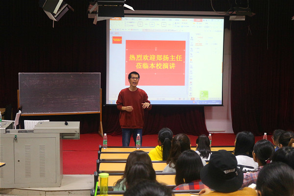讲座伊始,郑扬主任以理科生的角度对自己的身份做了简单介绍,并表示感谢文学院的邀请。此次讲座主要从“机关工作常用材料,如何形成完整材料”两个方面展开讨论。在提到常用材料时,郑主任用“省委书记王东明讲话”“经验建设”的案例介绍了政务信息、机关总结、调查研究和领导讲话。并强调信息是决策的基础,好的公文能够方便领导做出好的决策,发挥公文的作用。接着,郑主任将写公文比作办宴席,生动形象的讲解了如何收集好完整材料。此次别开生面的讲座获得了在座师生的一致好评。