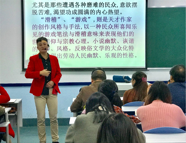 10月20日早上8点20分,内江师范学院副教授冯利华老师在第二教学楼103教室与小学语文组集训成员一起探讨古代文学的意义。