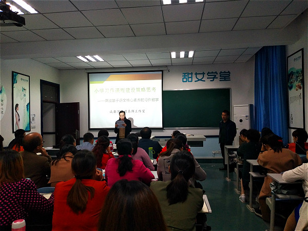 10月21日上午8点30分,成都罗良建名师工作室的罗良建老师就《小学习作课程建设与策略思考》在2教103教室进行专题讲座,党总支副书记覃华艳担任本次讲座的主持人。