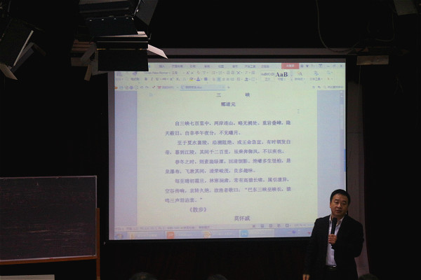 10月22日早上8点,重庆市第八中学高级语文教师张泽勇老师于中文楼501教室开展了以“阅读教学与文本解读”为主题的学术讲座,易晓慧老师主持讲座。