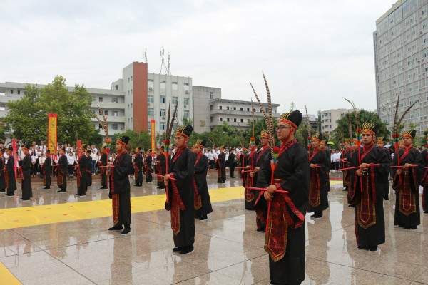 祭孔典礼是弘扬中华优秀传统文化、营造尊师重教氛围的重要载体,对此,我院高度重视。受学校委派,此前,我院古代文学教研室部分教师专赴山东曲阜、都江堰观摩学习。回校后,在学院领导的牵头组织下,老师们对校园祭孔的时间场地、主要程序、重要礼制、乐舞祝文等均作了认真研究,强调集乐、歌、舞、礼为一体,以音乐、舞蹈、朗诵等形式集中表现儒家思想文化,让全校师生闻乐明德,观舞澄心,识礼明仁。为体现传统魅力,学院动员大一、大二全体男生、大三部分男生参与诵礼、担任祭礼乐舞表演任务,精选部分女生参与诵礼和古筝表演,全体师生齐心协力,认真集训,做好了充分准备。