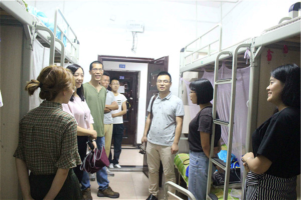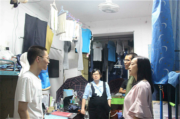 老师们所到宿舍,毕业生们纷纷详细汇报了自己的班级、生活和就业情况,对学院老师对自己的培养表示感谢,深切抒发了对学院、老师、同学的感激和留恋之情。覃书记和刘书记也与毕业生们展开了深入交谈,询问了他们毕业后的走向、未来的规划、对学校建设的意见建议等各类问题,并拍照留念。