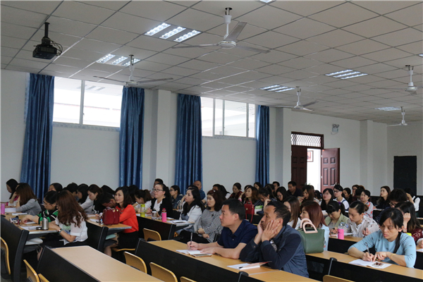 紧接着,吴老师从教学技巧、教学内容、教学方法三方面给在场的老师们做了系统的讲解。在课堂中,吴老师指出,在授学的过程中,作为一名教师,大家首先要注意技巧,在给孩子们讲解字词时,要讲出其情趣和韵味,激发孩子们学习的兴趣。其次,要让知识有根,确保教学内容的正确。同时要在对立中引发问题,善于用生活中常见的案例分析所教学的内容。最后,他希望在场老师们要注意文本资源的挖掘,不是“教教材”,而是要“用教材教”,利用教材文字加以引导,鼓励标新,让学生艺术化地言说。另外,吴老师还通过在课堂上播放其他优秀老师的上课视频,让现场的老师们学到了更多的教学技巧,同时让他们更深地体悟到教学方法对教育孩子的重要性。