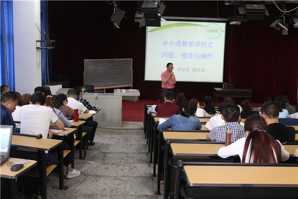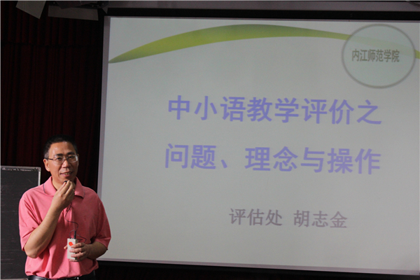 5月16日上午8点30分,内江师范学院评估处副处长、教育学专业胡志金教授在中文楼501为初中语文组学员开展了以“语文教学与质量测评”为主题的专题培训。本堂培训课由贺山秀老师主持。