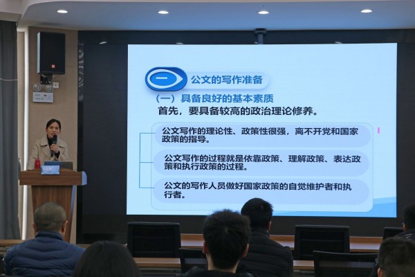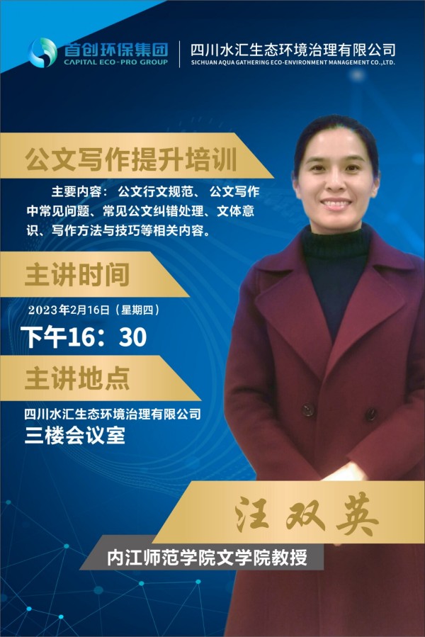 为了推进产教融合,服务地方经济发展,文学院创新开展校地合作,积极发挥学科优势服务地方公共文化事业, 2月16日,内江师范学院文学院教师团队应邀参与首创集团四川水汇生态环境治理有限公司机关公文写作培训工作。汪双英教授领衔团队为四川水汇三十余名中层干部和业务骨干授课,本次培训运用大量的实例,重点讲解常见公文规范、特点及写作难点和易错点,现场解疑答惑,切实提高了学员们的公文写作能力。