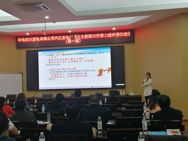 为了进一步加强校地联系,深化校地合作,提升技术服务水平,拓展校企合作新路径,4月13日至16日,内江师范学院文学院教师团队应邀参与内江发电厂公文新闻写作能力提升培训工作。汪双英教授带领张宪军博士,吴飞老师为内江发电厂四十余名中层干部和宣传干事授课,本次培训运用大量的实例,重点讲解公文、新闻的形式、特点及写作难点和易错点,现场解疑答惑,切实提高了学员们的公文和新闻写作能力。