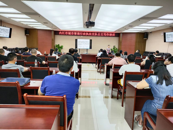 校地合作是促进教育与科技经济紧密结合、提升协同创新能力和服务社会水平的重要途径,为了进一步提升技术服务水平,加强校地联系,5月30日至6月1日,内江师范学院文学院教师团队应邀参与内江市城市管理行政执法支队机关公文写作培训工作。汪双英教授领衔团队为全市城管执法系统三十余名中层干部和业务骨干授课,本次培训运用大量的实例,重点讲解常见公文、事务文书的形式、特点及写作难点和易错点,现场解疑答惑,切实提高了学员们的公文写作能力。