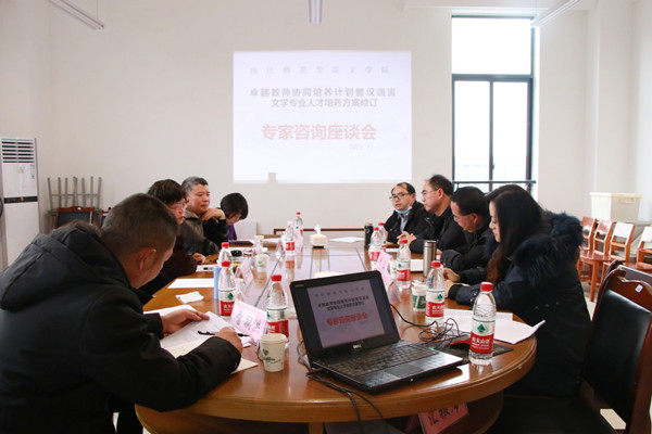 按照我校汉语言文学专业师范二级认证工作整改意见,文学院精心准备,于12月31日邀请了我市部分一线教育专家,在弘文楼506会议室召开了卓越教师协同培养计划暨汉语言文学专业人才培养方案修订专家咨询会,就语文教师职前教育听取一线教育专家意见建议,共同探索校地协同育人新模式。出席会议的有内江市教科所理论室副主任赵群英,内江市中学语文教研员潘利英,内江二中语文名师黄自友,隆昌一中语文名师雷嗣洪,东兴区教育局教科室副主任罗莉以及东兴初中、双桥中心校、汉安小学、经开区实验学校等校的教师代表。文学院副书记(主持工作)周艺主持会议,文学院党总支副书记刘正丽、副院长于军民出席会议。