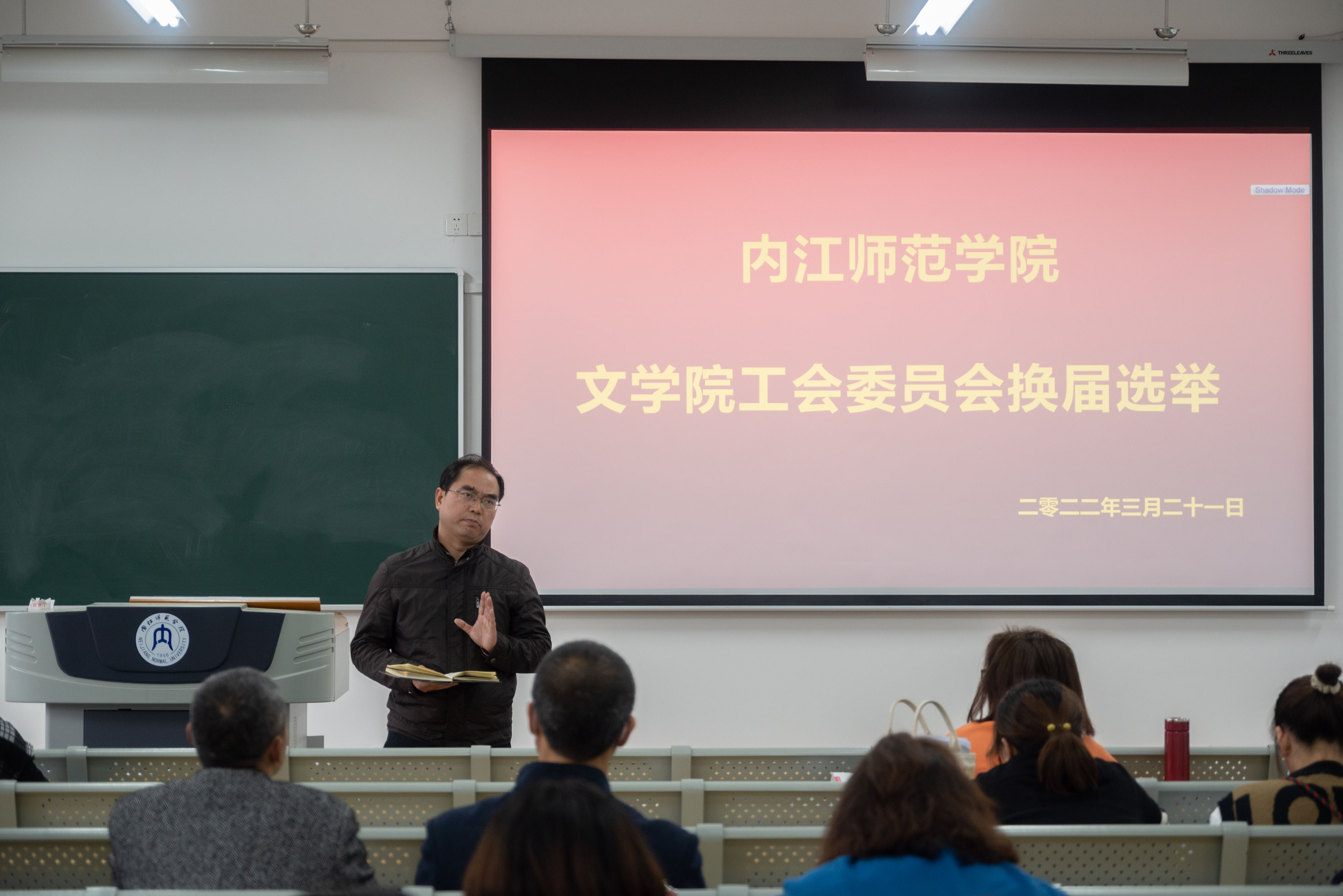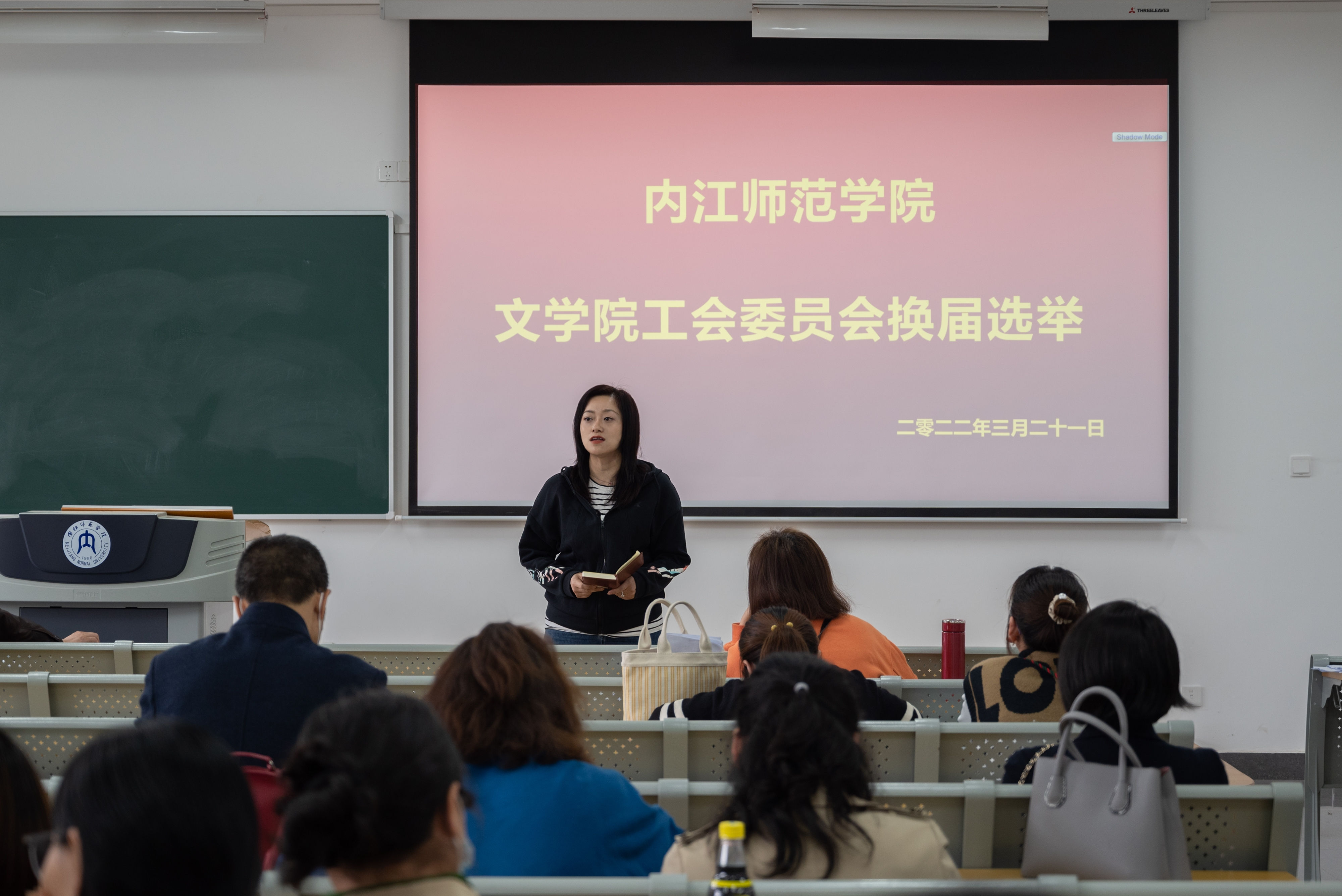 为进一步加强我院工会组织建设,充分发挥工会组织的桥梁纽带作用,3月22日下午4点,我院召开工会委员会换届选举大会。今天大会应到工会会员67人,据统计,因公、因病、因事请假4人,实际到会的工会会员63人,超过应到工会会员的三分之二,符合法定人数。会议由我院党总支副书记、文学院工会主席刘正丽主持并讲话。